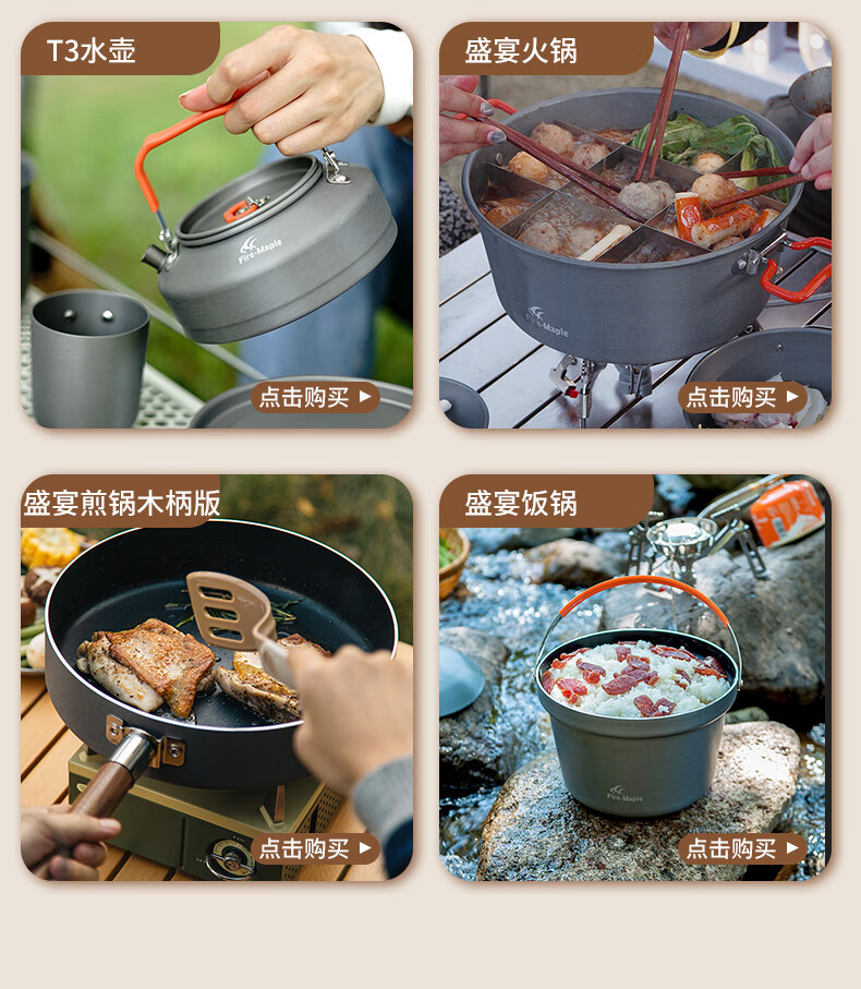爱路客(ALOCS)风暴炉户外防风露营野炊便携套锅炉炊具酒精煮锅全套 2锅1煎1炉 酒精版