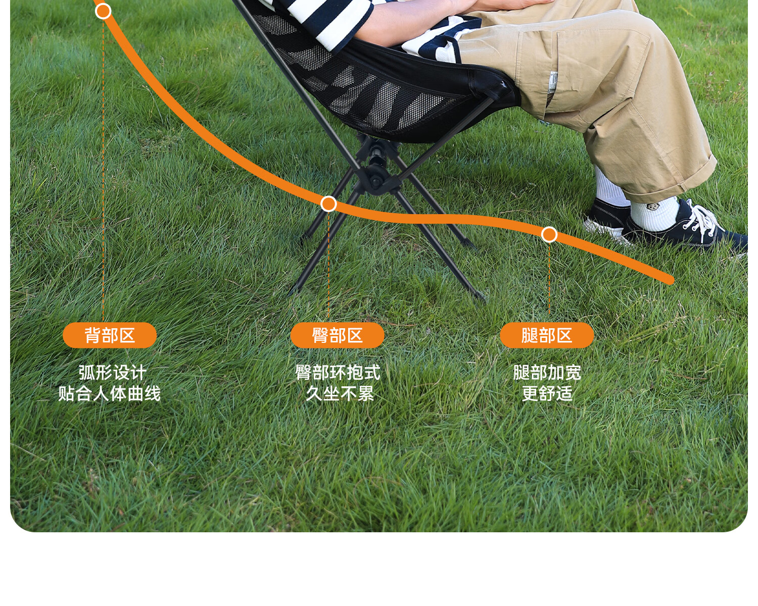原始人月亮椅露营椅子户外折叠椅便携野餐桌椅钓鱼凳子沙滩椅躺椅 黑色(超轻便携送收纳袋)