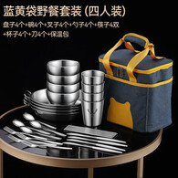 凰一 户外野餐304不锈钢便携套装水果盘子餐盘包全套饭盒组合套装家用 蓝黄袋野餐29件套(四人装)