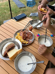 CLS户外多功能野餐套碗304不锈钢折叠碗500ml野营便携炊具登山杯餐具 套碗-大钢碗+小钢碗