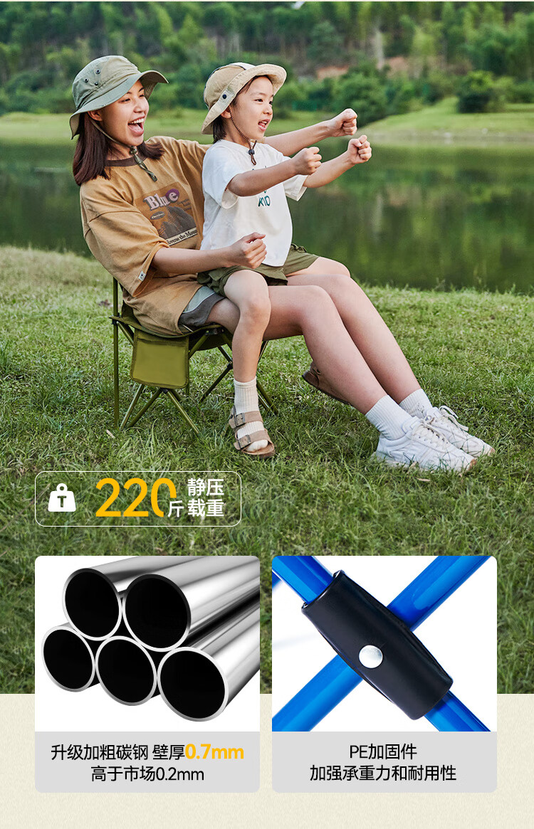 伯希和(Pelliot)户外折叠椅子露营装备野餐钓鱼椅靠背马扎小凳子美术生便携 卡其色