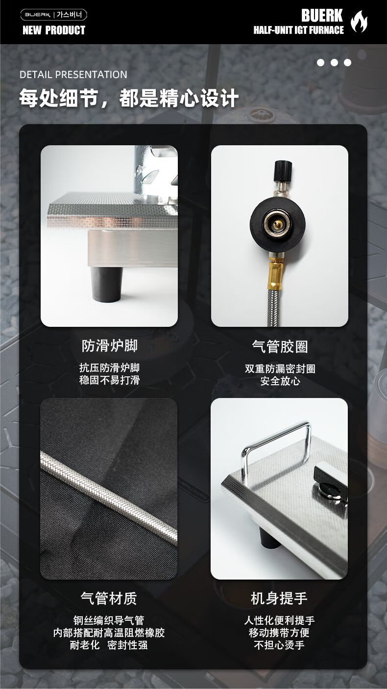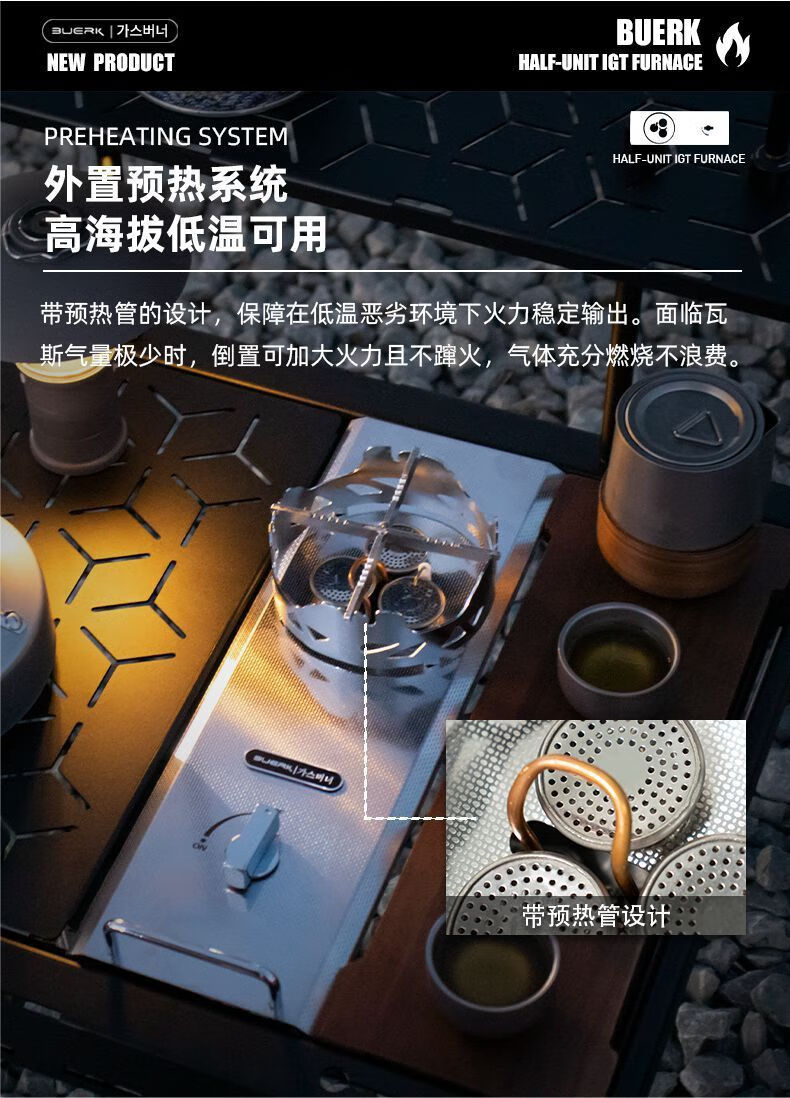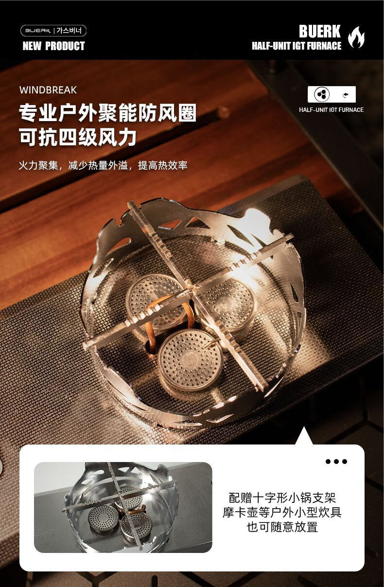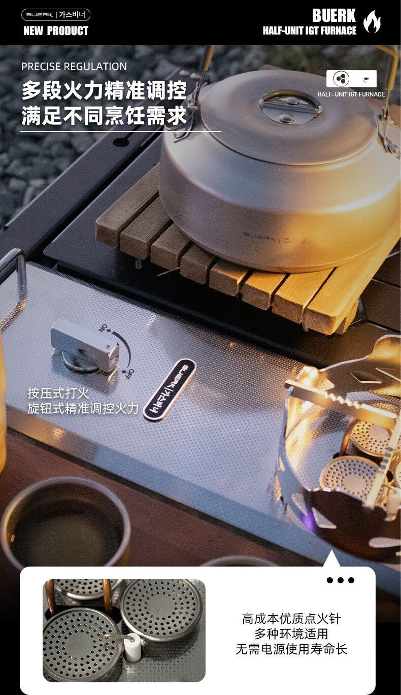 布比克(BUERK)半单元IGT户外分体式野营便携猛火防风燃气卡式炉跨境批发 锻造纹不锈钢【质感】