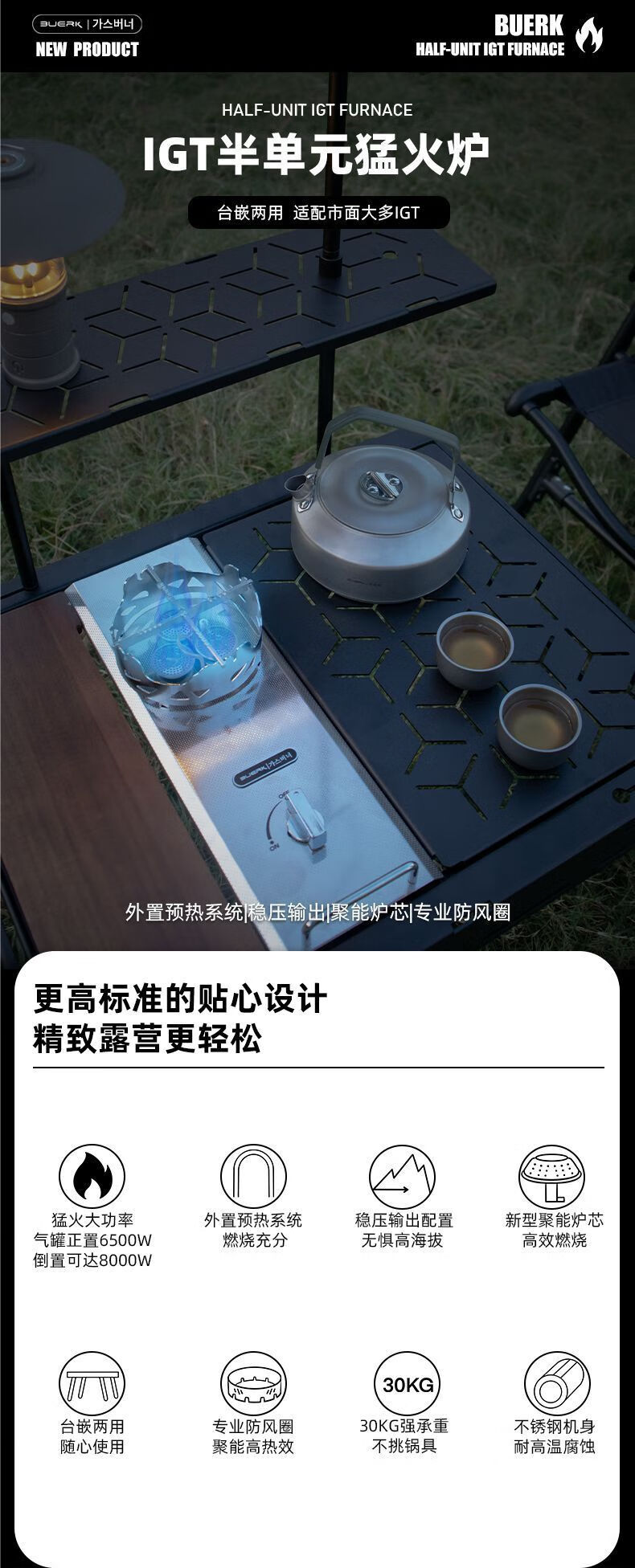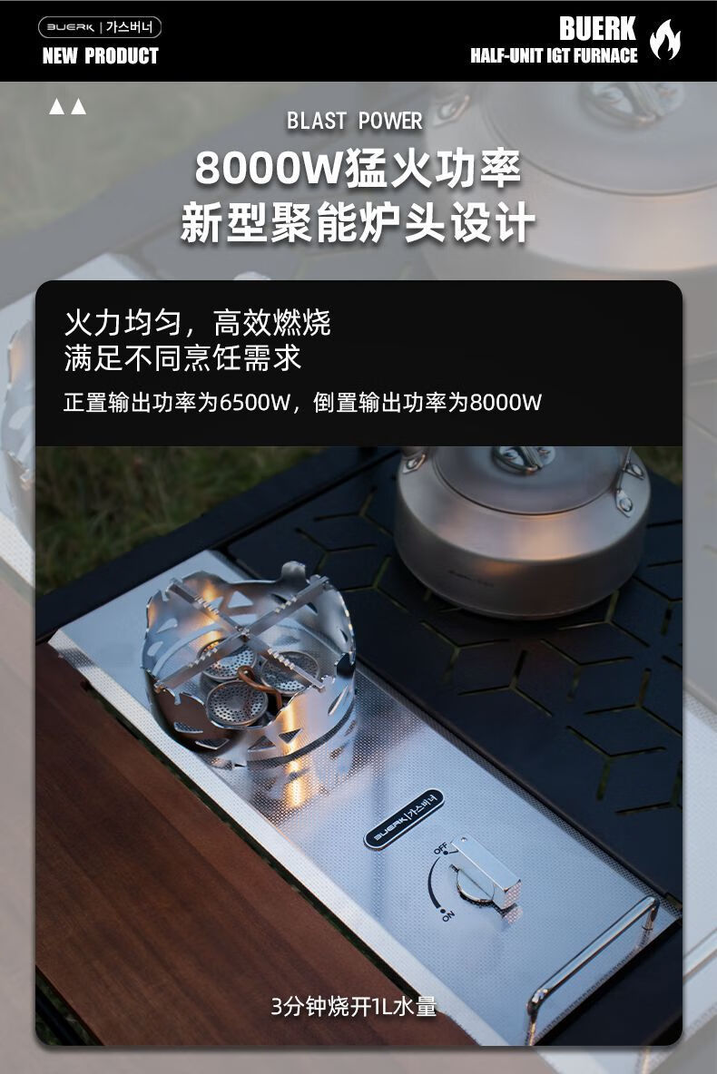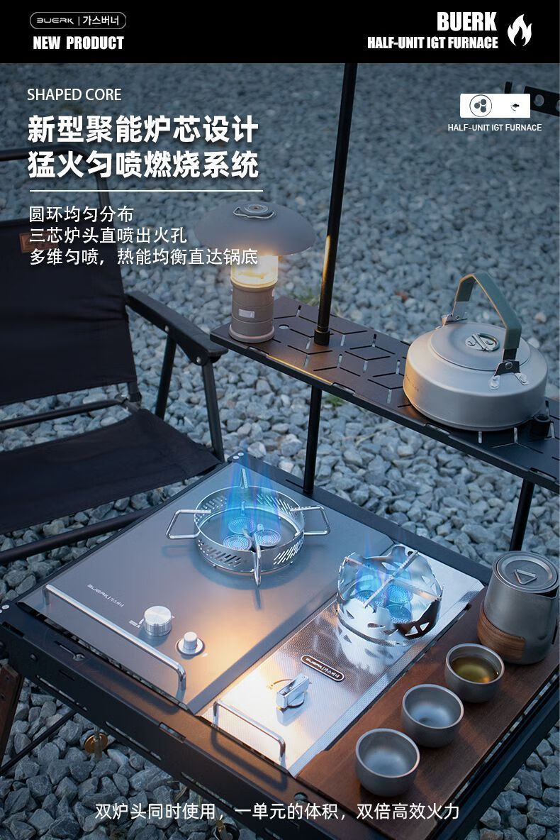 布比克(BUERK)半单元IGT户外分体式野营便携猛火防风燃气卡式炉跨境批发 锻造纹不锈钢【质感】