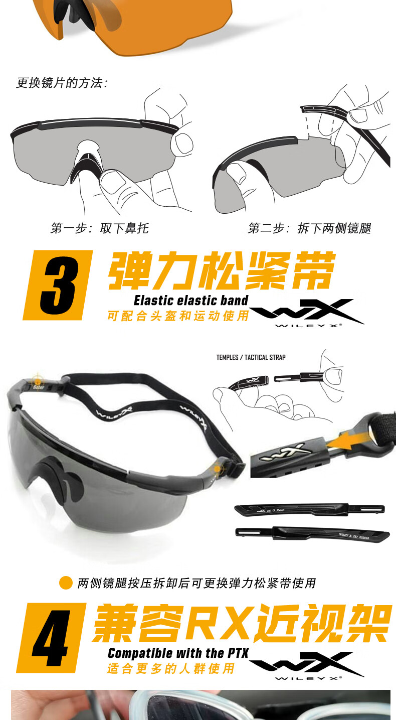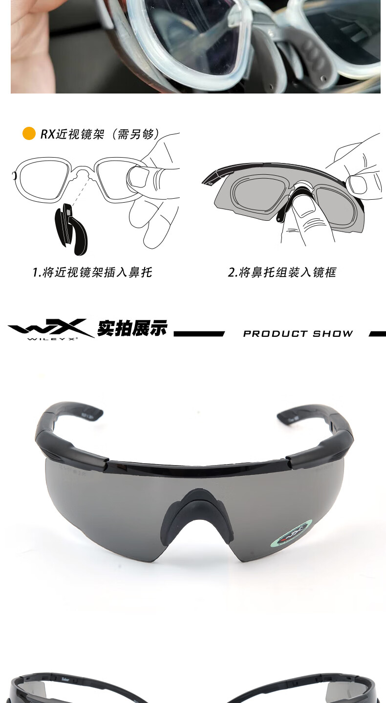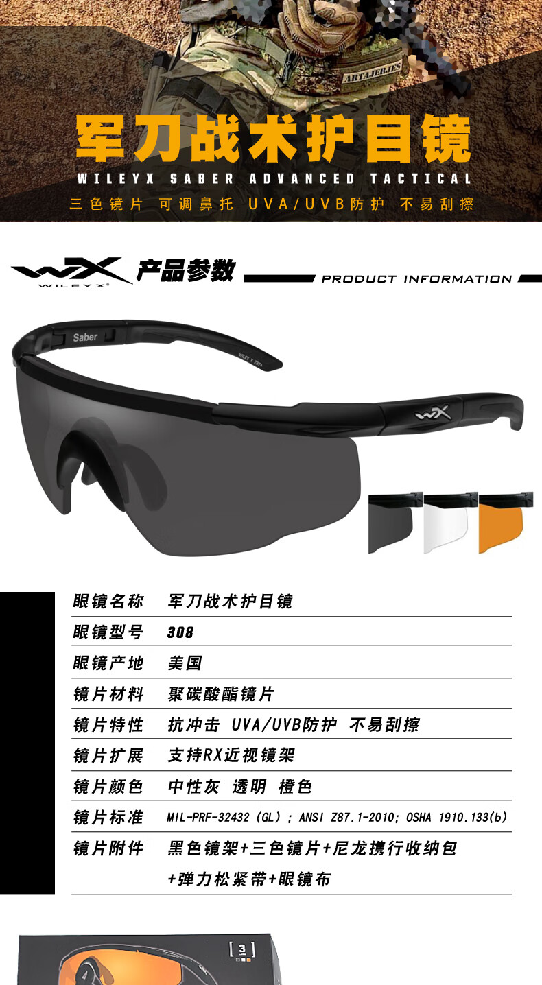 WILEY X美国威利视护目镜墨镜男战术三色防弹308 眼镜