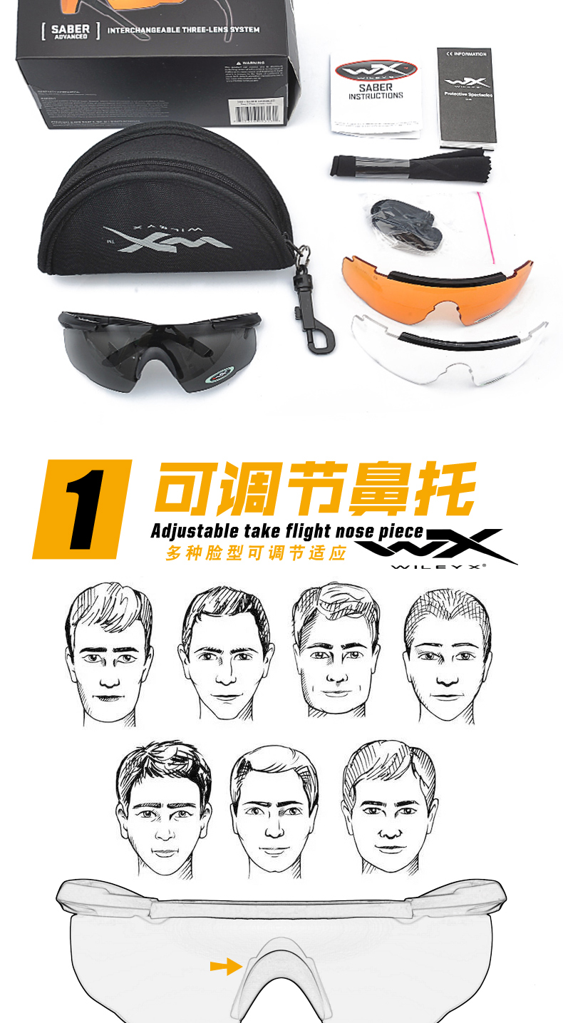 WILEY X美国Wiley X威利视 三色战术射击防护防风防弹护目眼镜3502 黑色