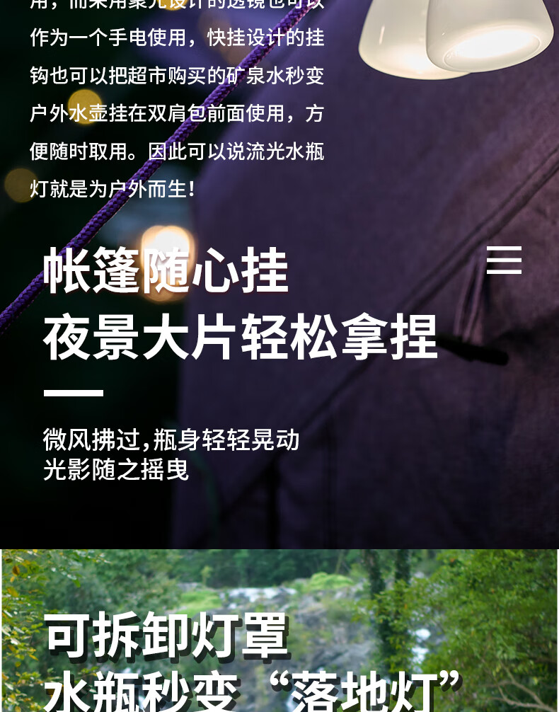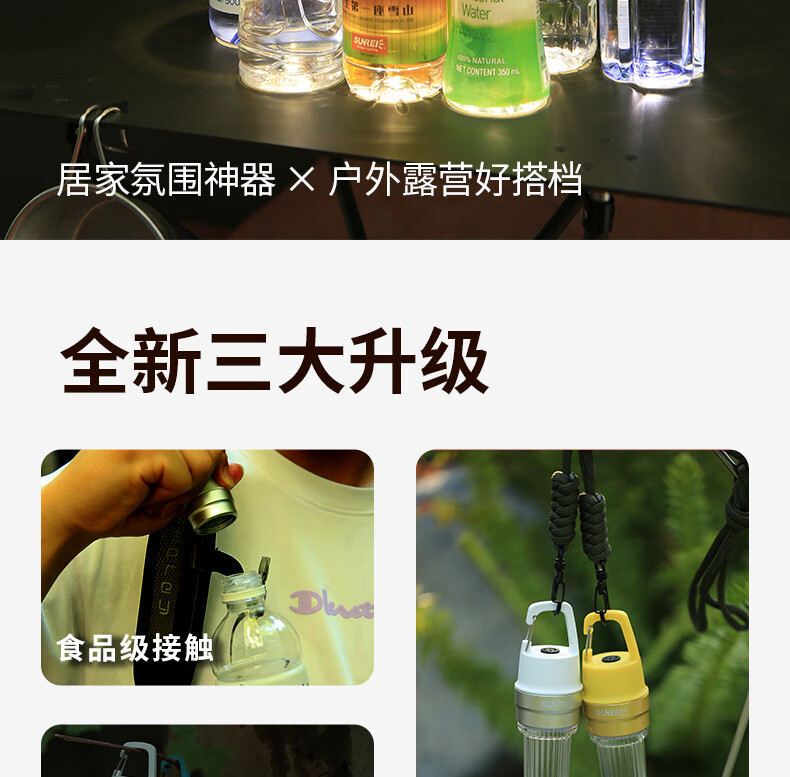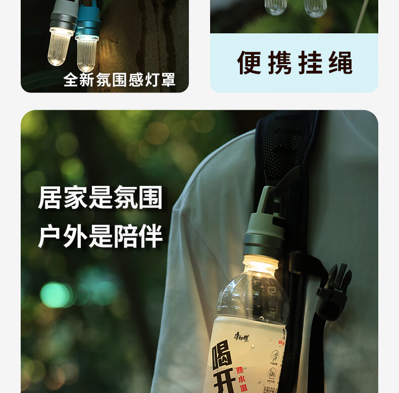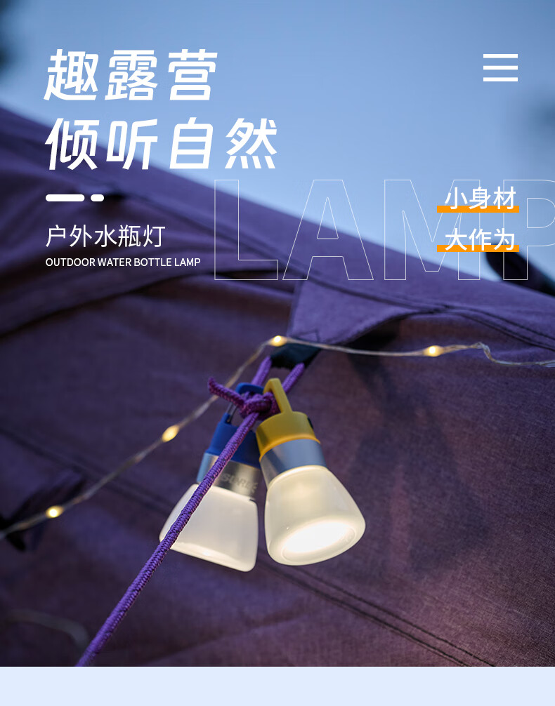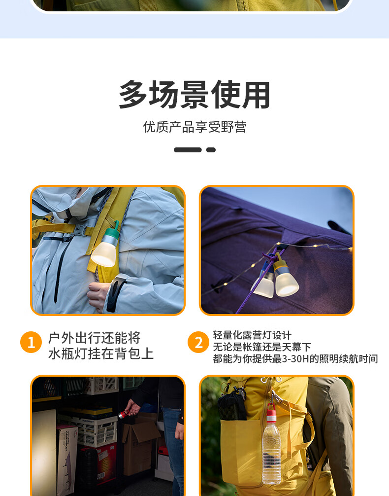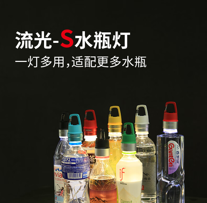 山力士流光水瓶灯 户外露营灯营地户外照明瓶盖灯小手电筒LED氛围灯 水瓶灯活力黄