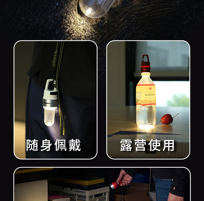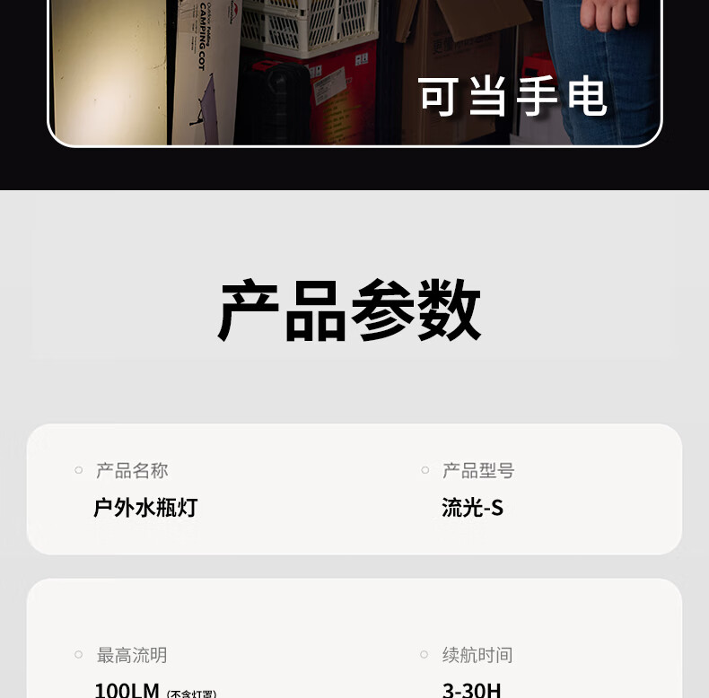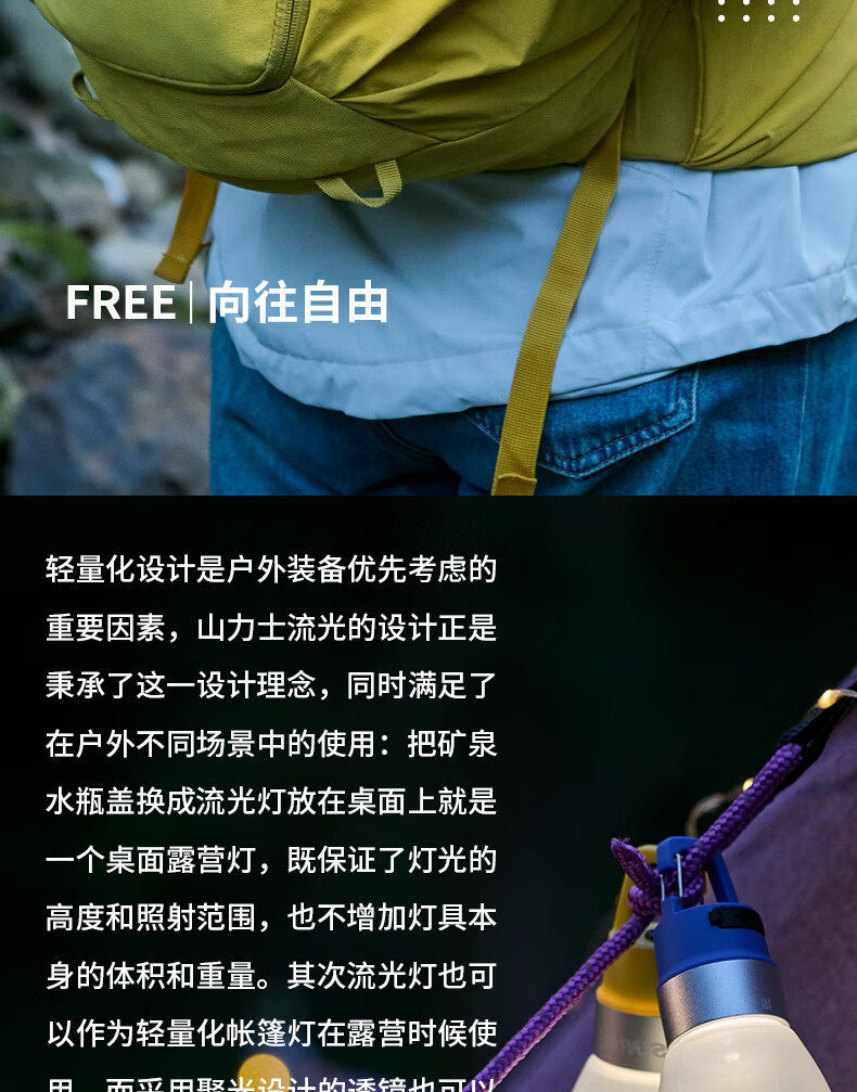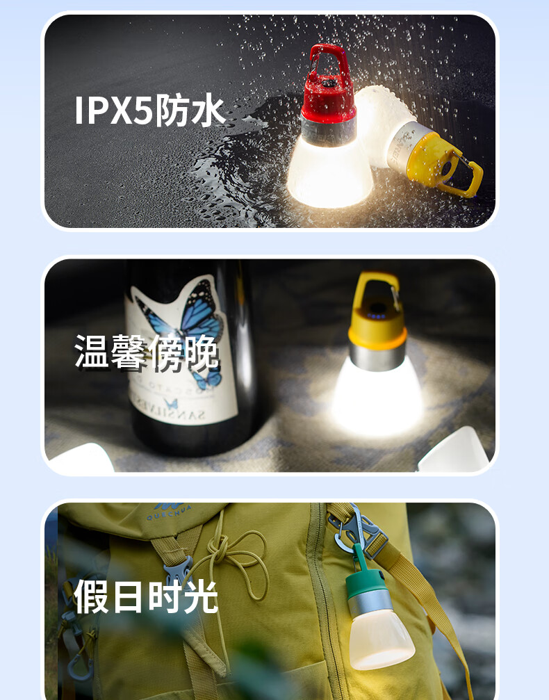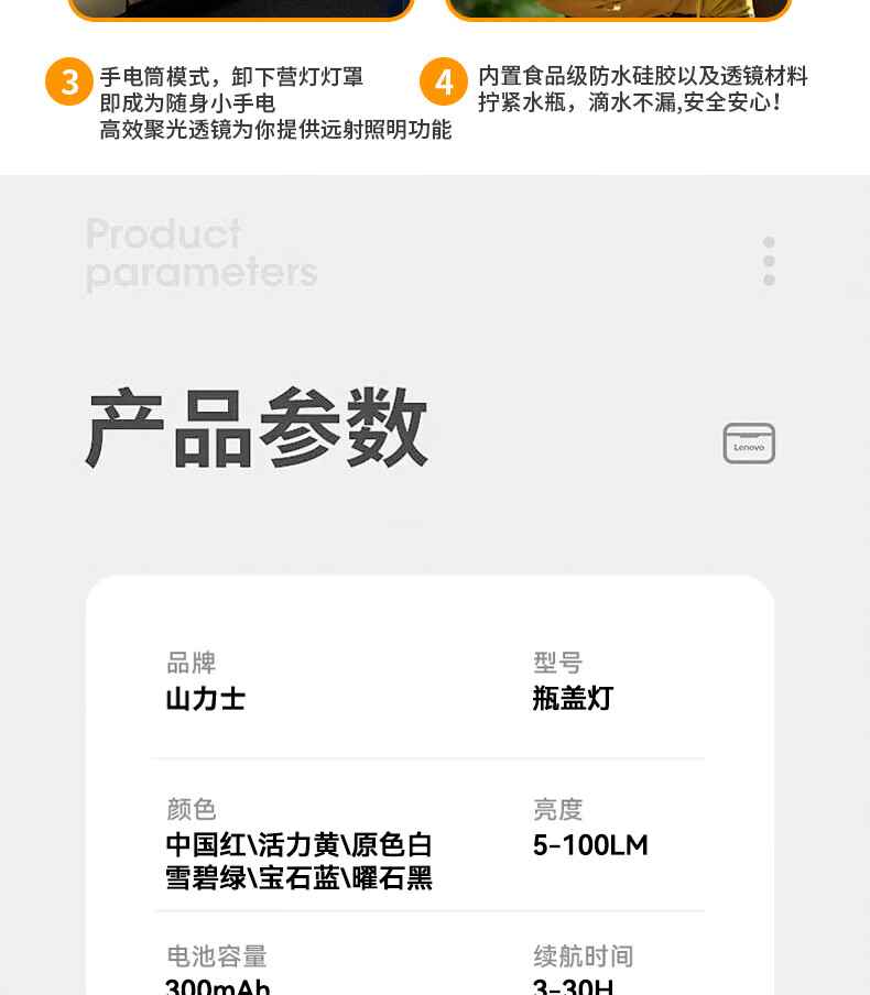 山力士流光水瓶灯 户外露营灯营地户外照明瓶盖灯小手电筒LED氛围灯 水瓶灯活力黄