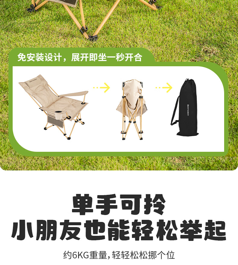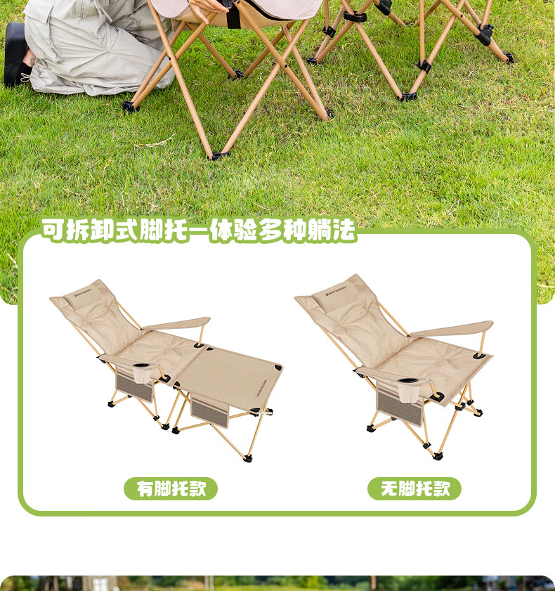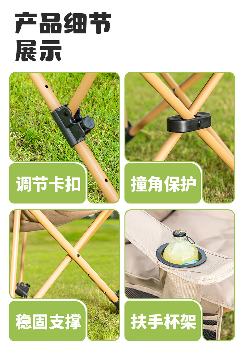 牧高笛(MOBIGARDEN) 户外露营可折叠便携式休闲椅 靠背铝合金椅子懒人椅 双层单人椅 橄榄绿plus(带布套)