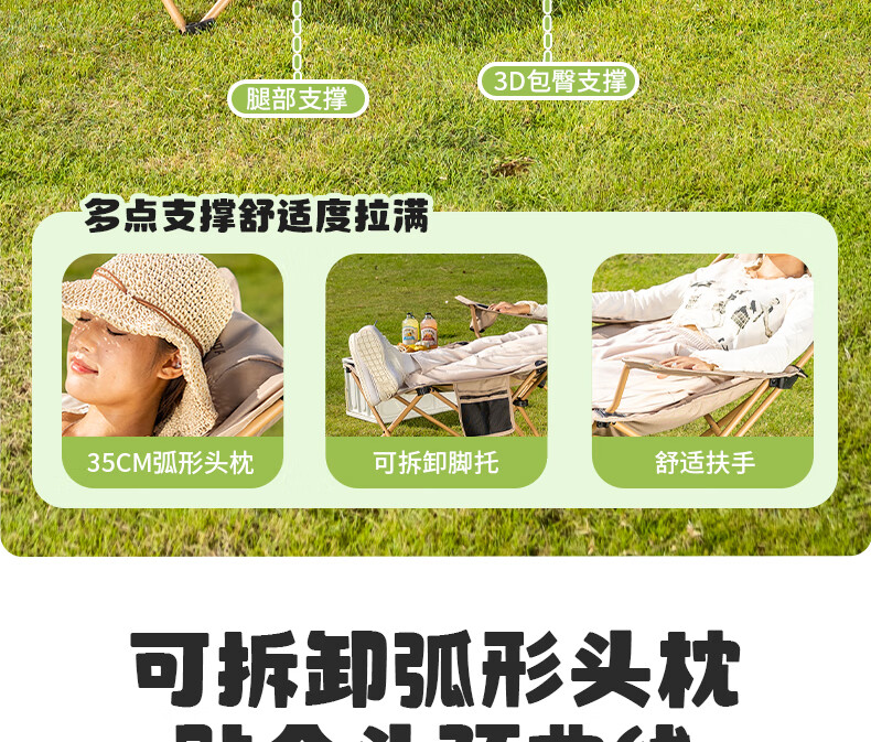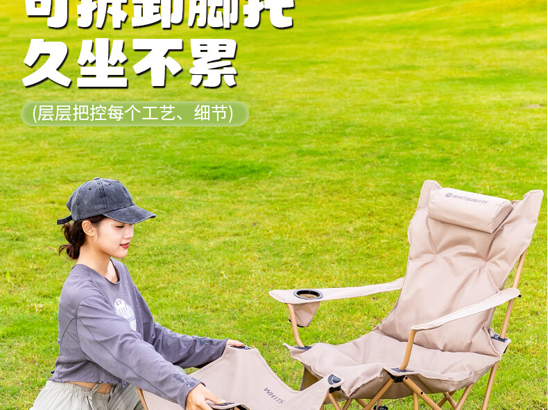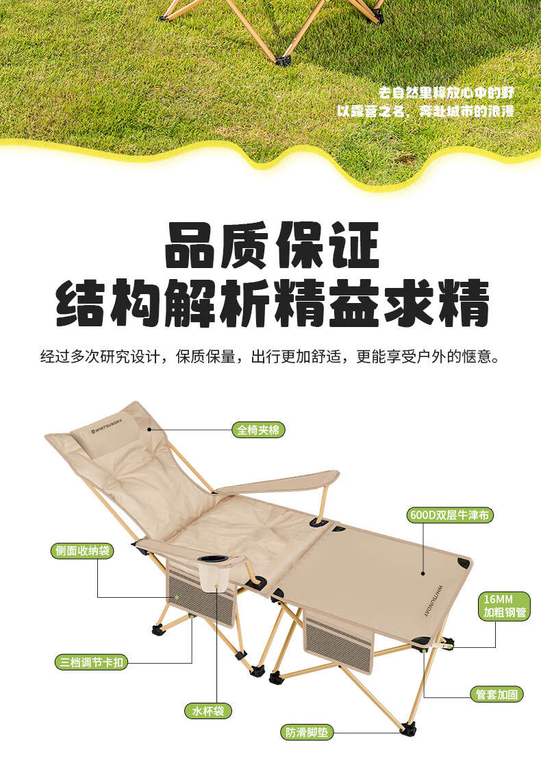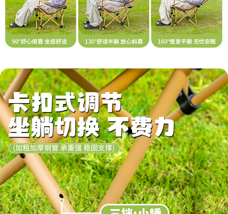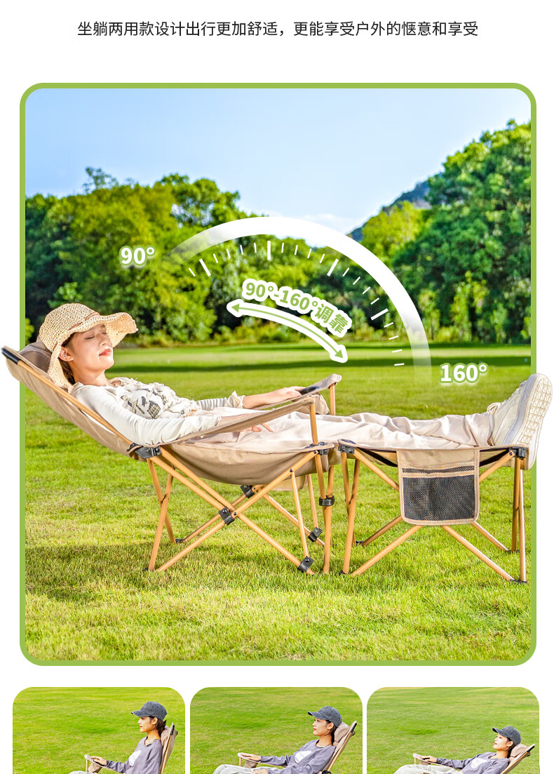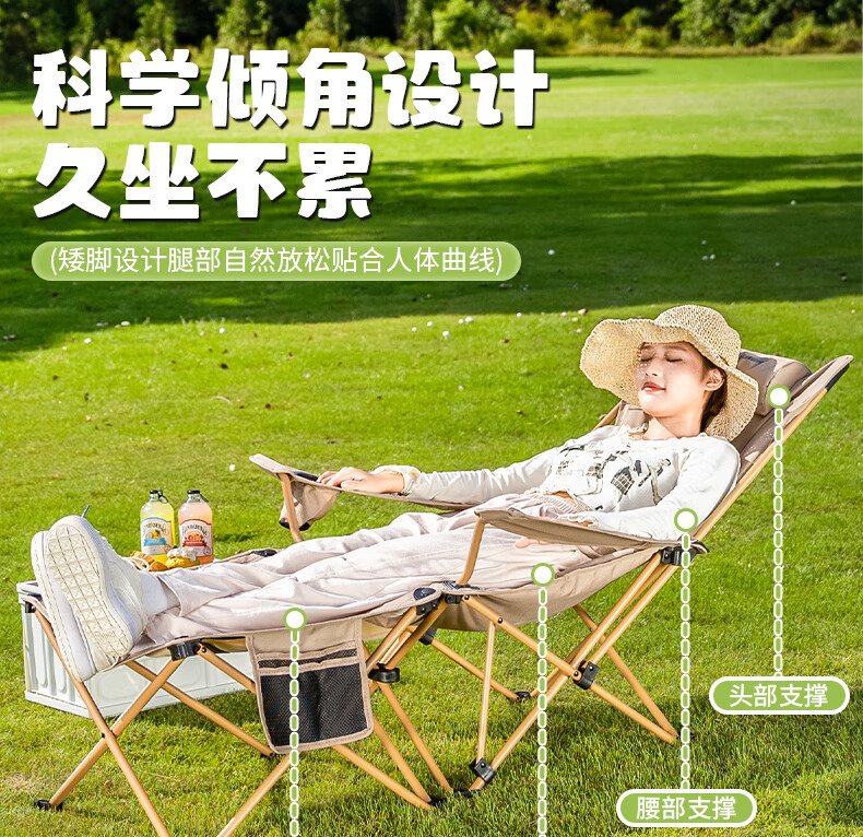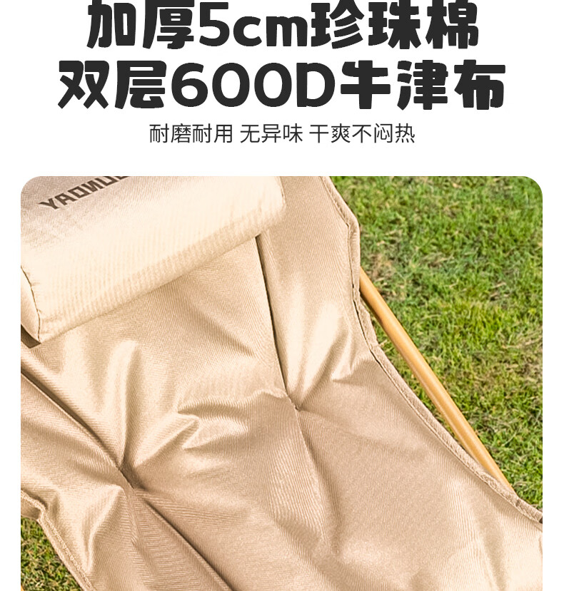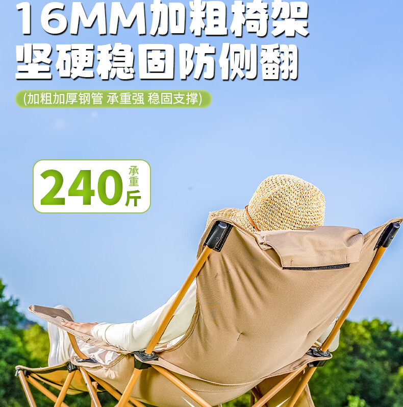 疆屿户外折叠躺椅便携式超轻钓鱼椅沙滩露营午休导演椅靠背小凳子 卡其【加厚5CM珍珠棉】大号躺椅