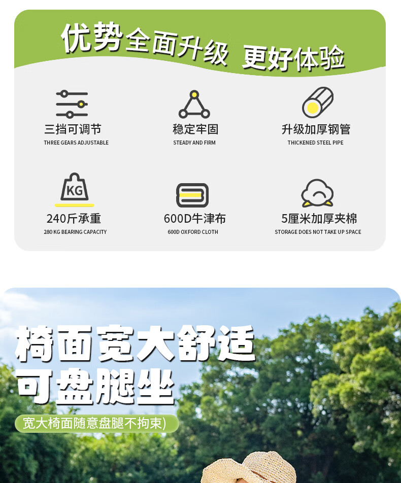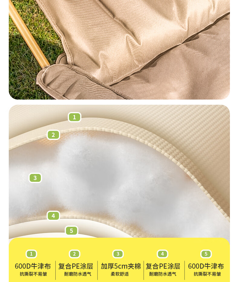 椅子收到了,质量很好,带棉的露营的时候躺下后背不凉了