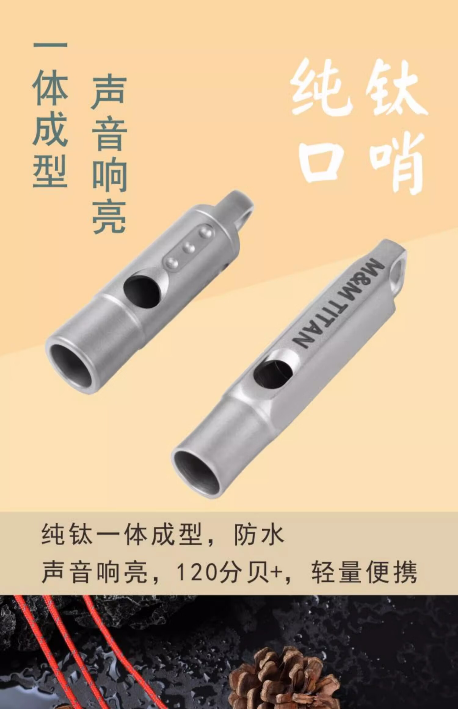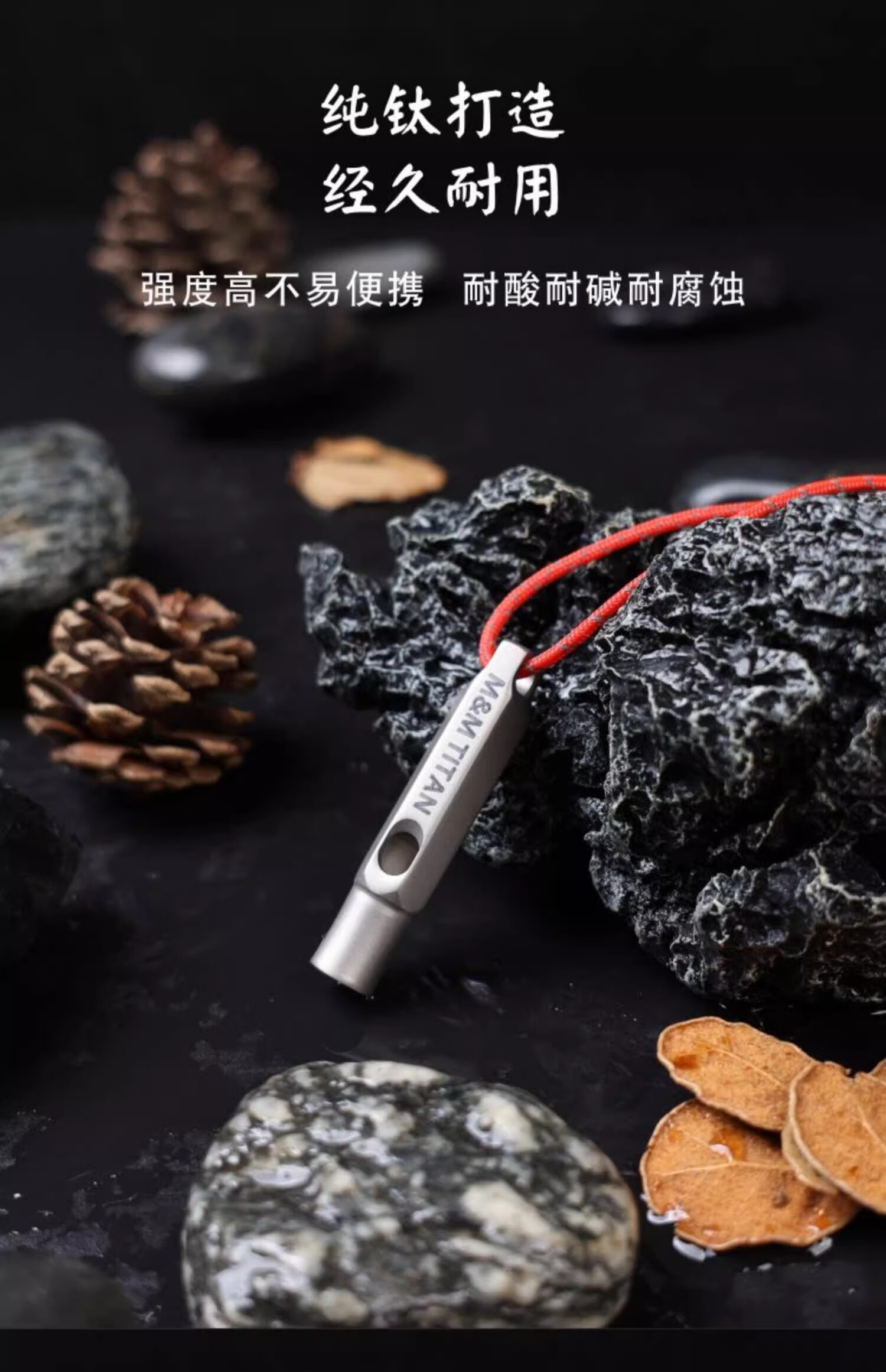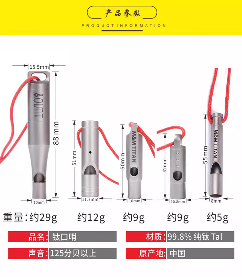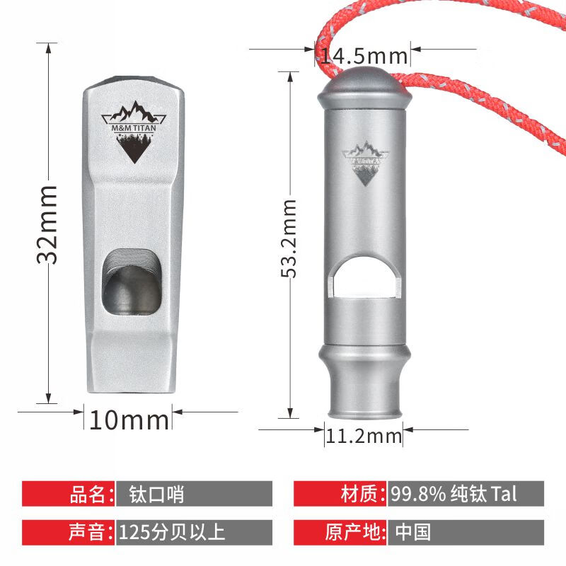 Ti artisan钛工匠纯钛求生口哨轻量便携户外求生钛哨子野营装备高频挂绳钛哨