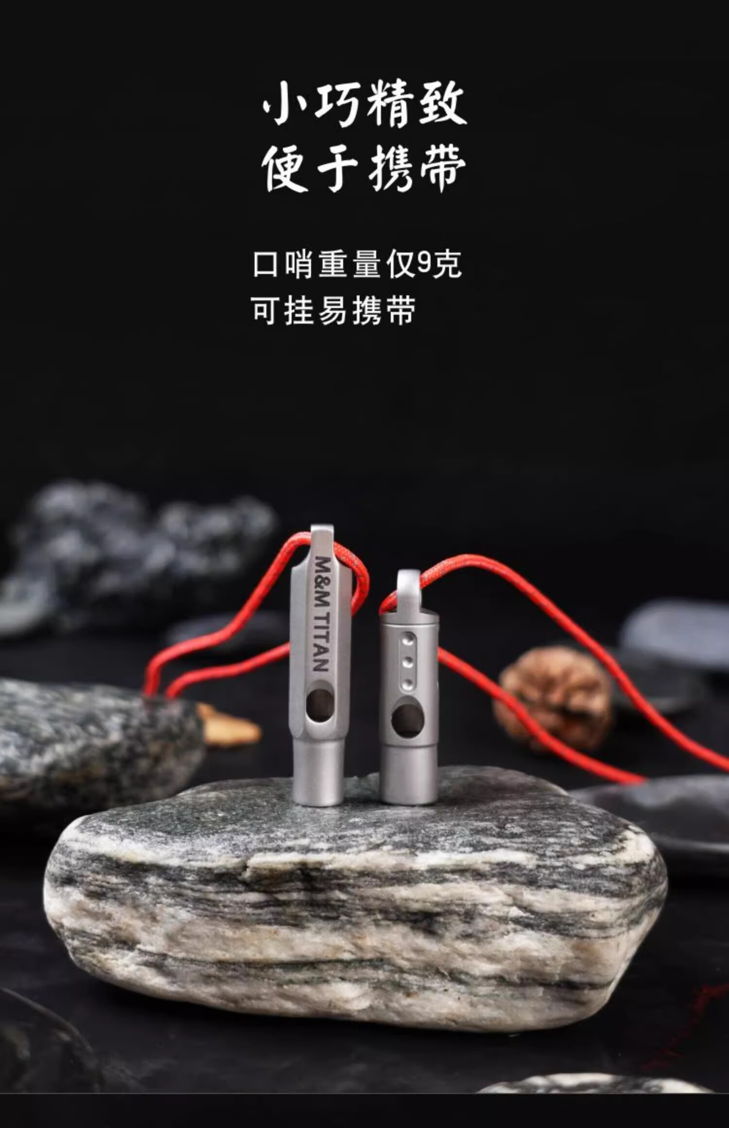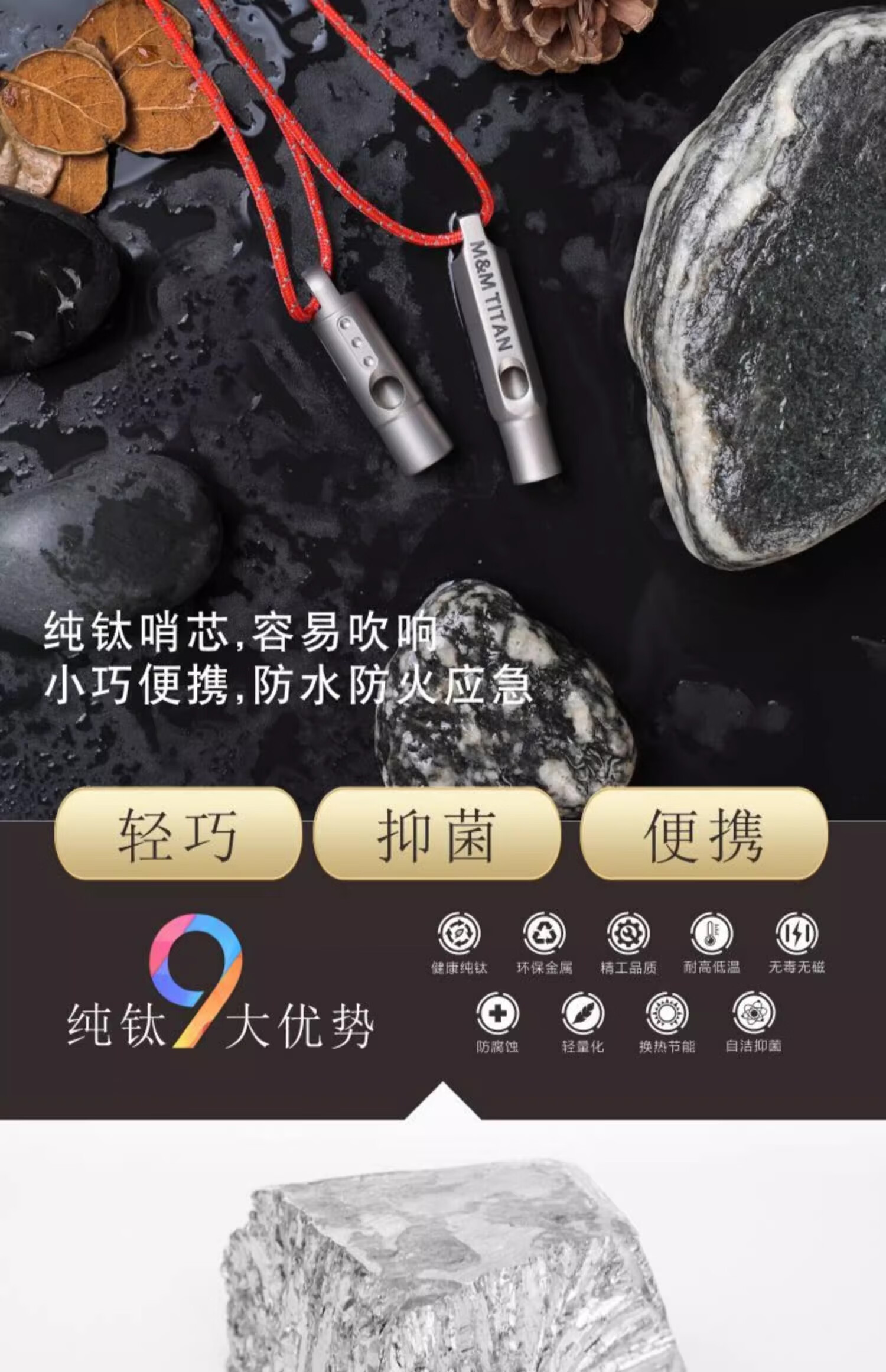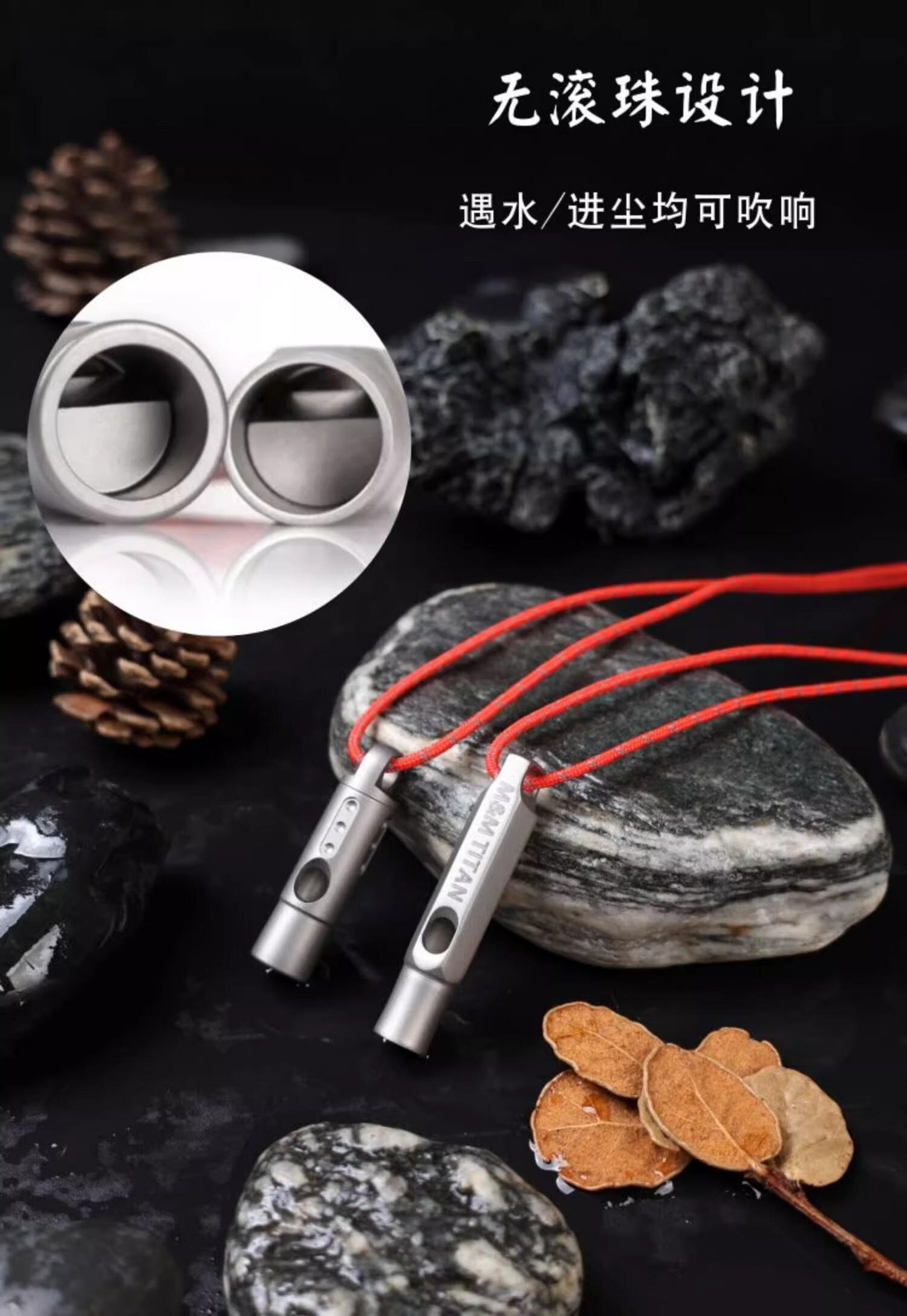 Ti artisan钛工匠纯钛求生口哨轻量便携户外求生钛哨子野营装备高频挂绳钛哨