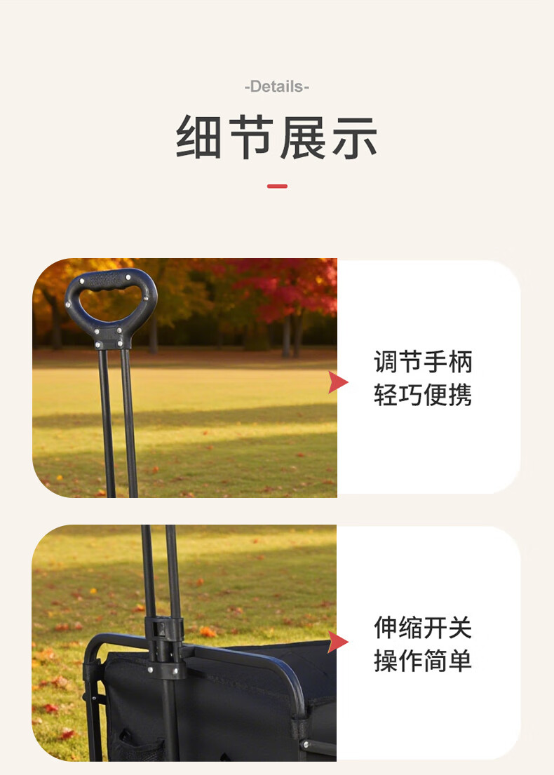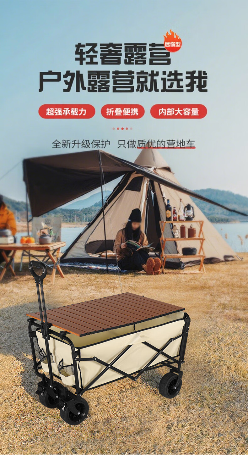 这款野外车真的很实用,折叠方便不占地方,轮子顺滑拉起来省力,露营时装备一车搞定。材质扎实耐用,性价比高。