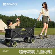 速营SOYON速营露营车户外折叠摆摊小推车野营野餐手推营地车儿童可躺 【经典款】静音轮+加粗全钢车架