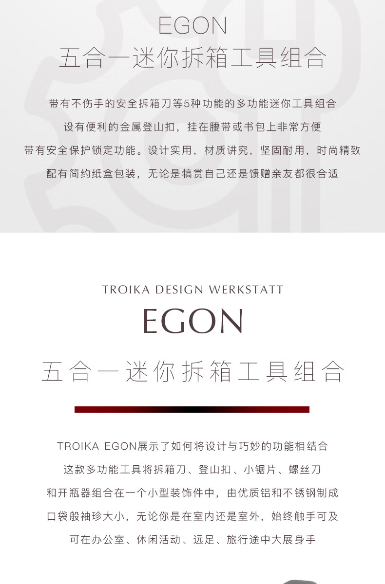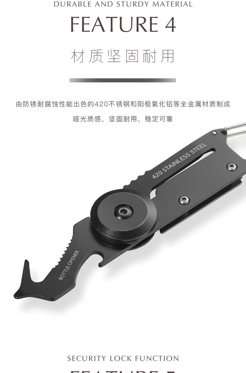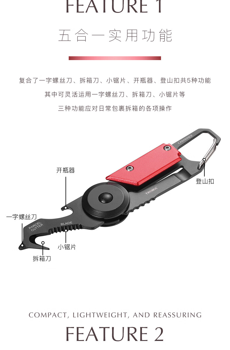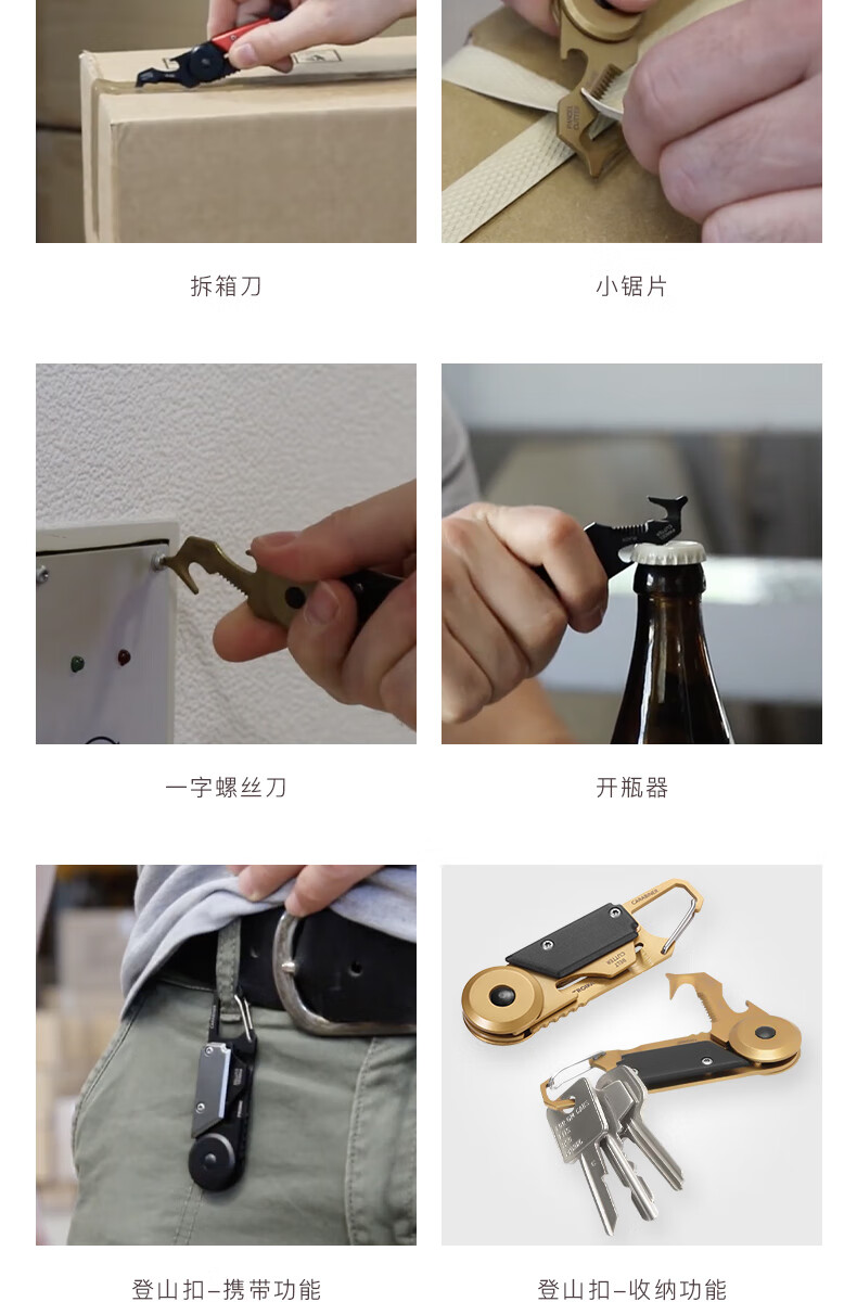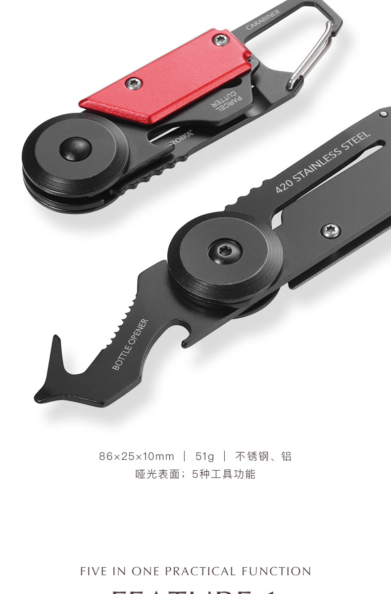 拓意卡德国拓意卡金属钥匙扣便携户外折叠工具拆箱刀锯片螺丝刀开瓶器 水洗石墨色