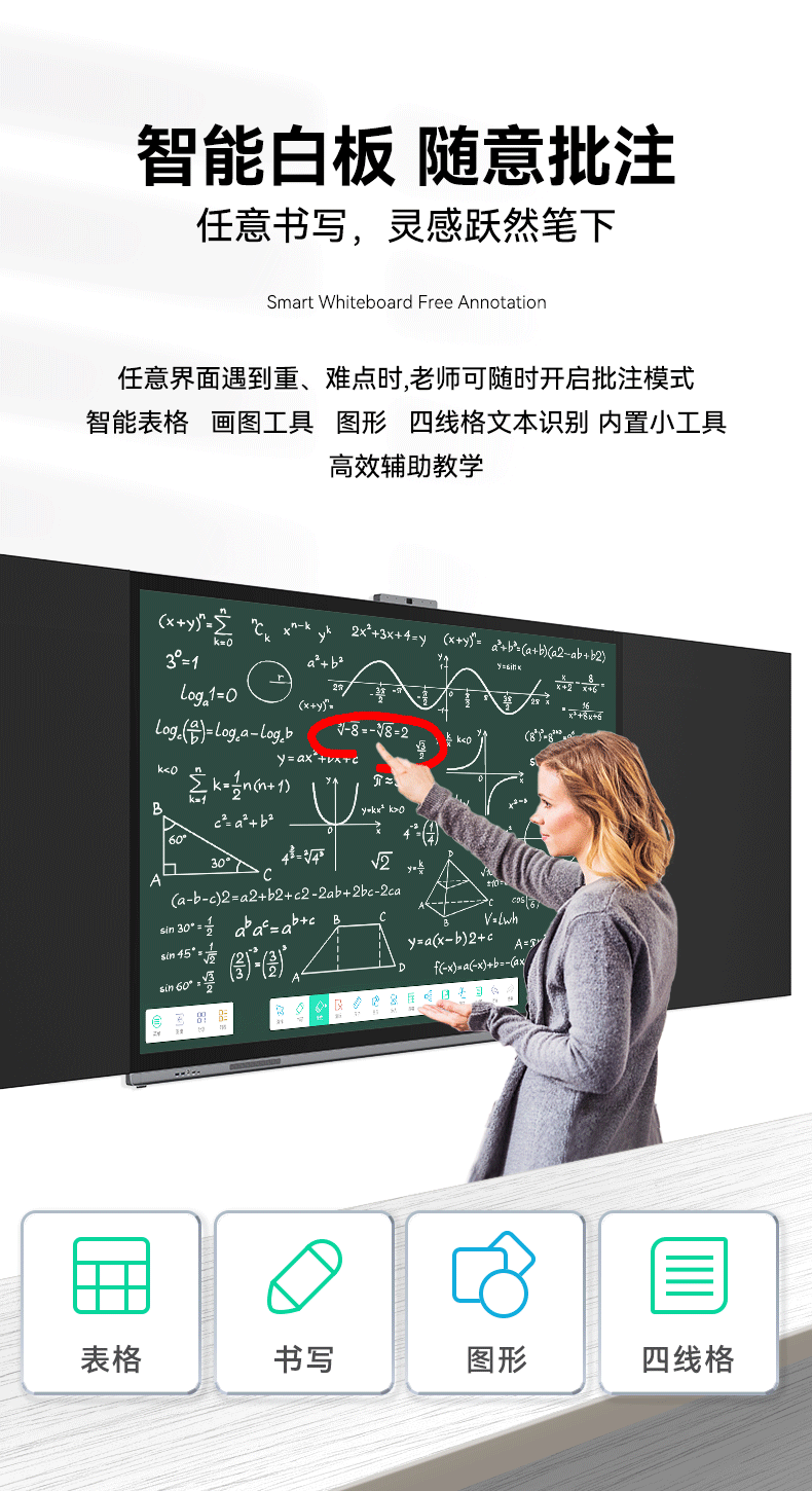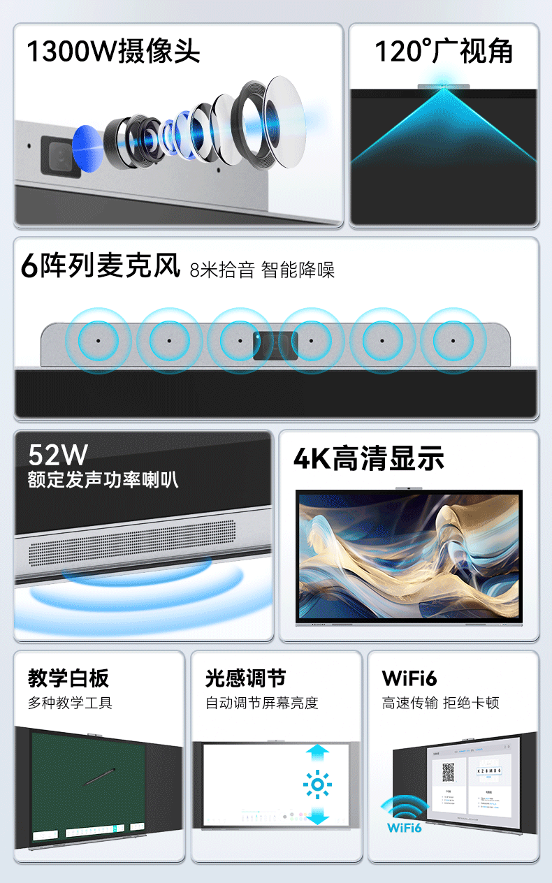 万宝wanbao纳米智慧黑板多媒体教学机一体机 会议平板 大中小学教育智能教室书写白板多功能触控大屏 65英寸J188-10代i5+8G+512G
