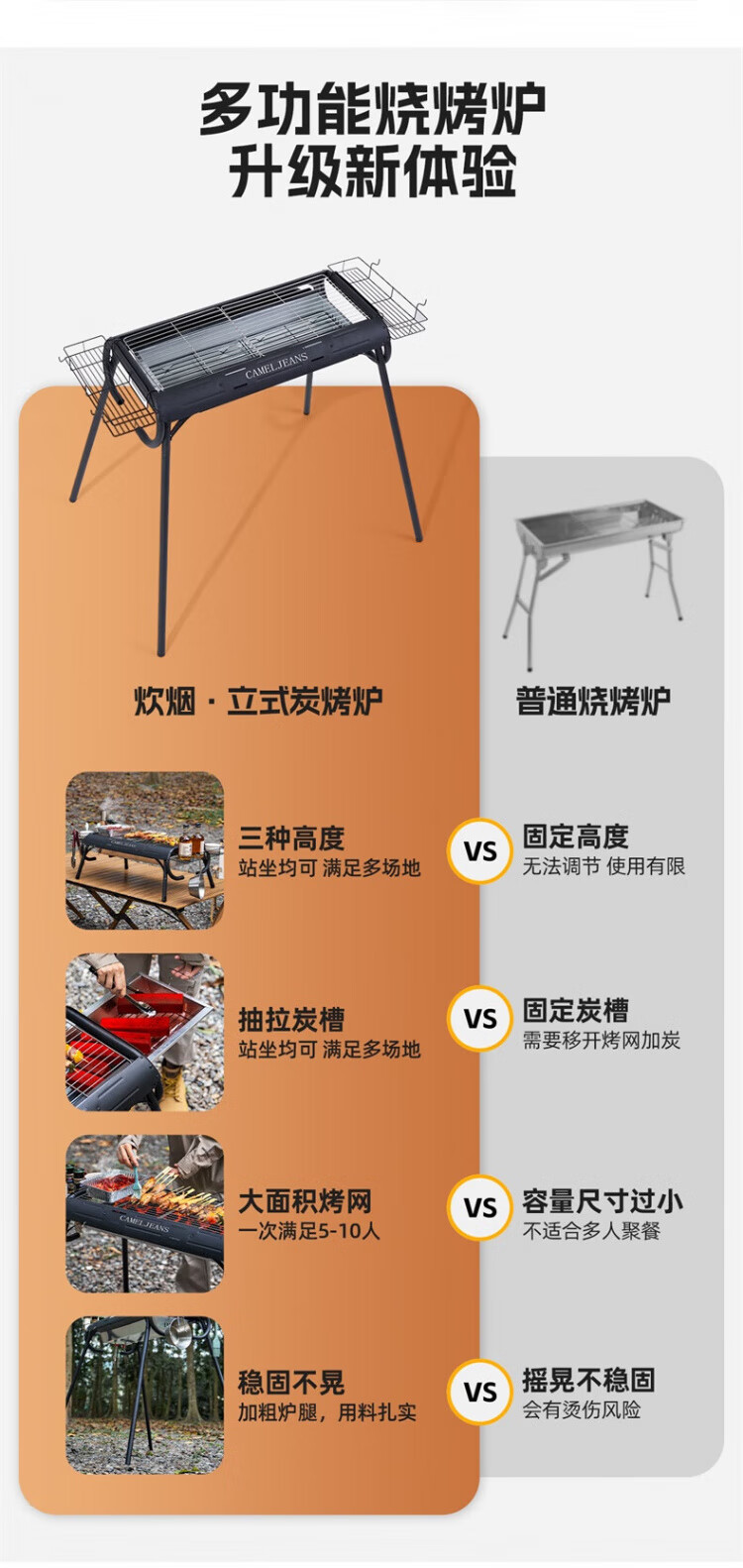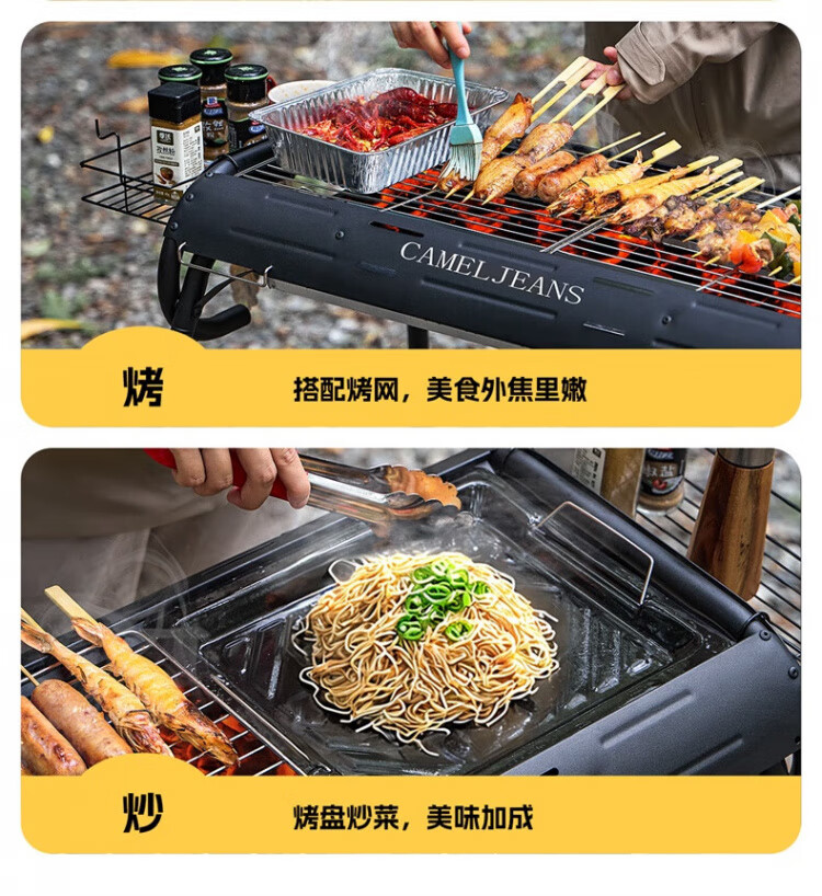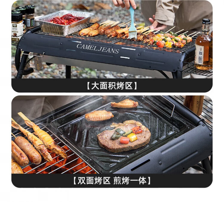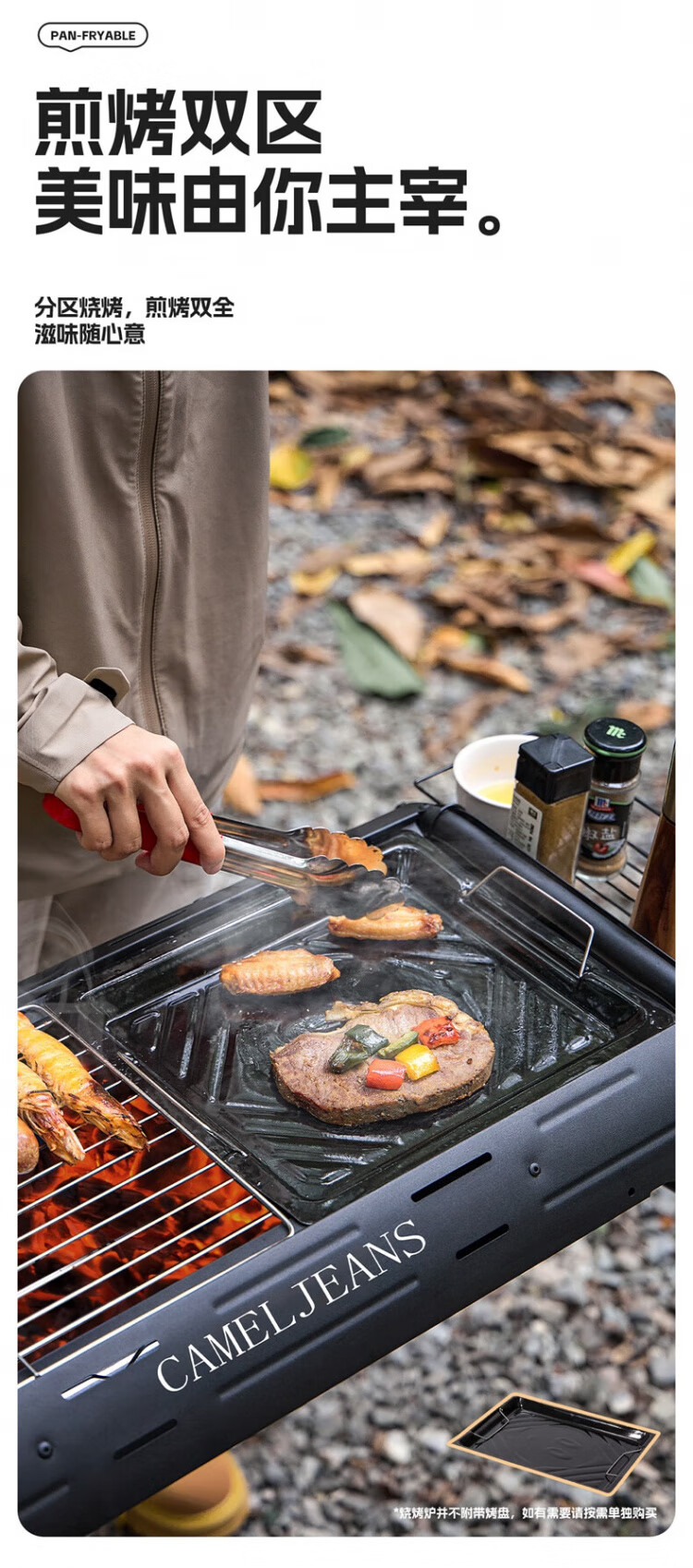 CAMELJEANS烧烤炉家用烧烤架烤肉串炉子户外露营便携折叠木炭可拆卸 174BH05721,炭烤炉配套煎盘