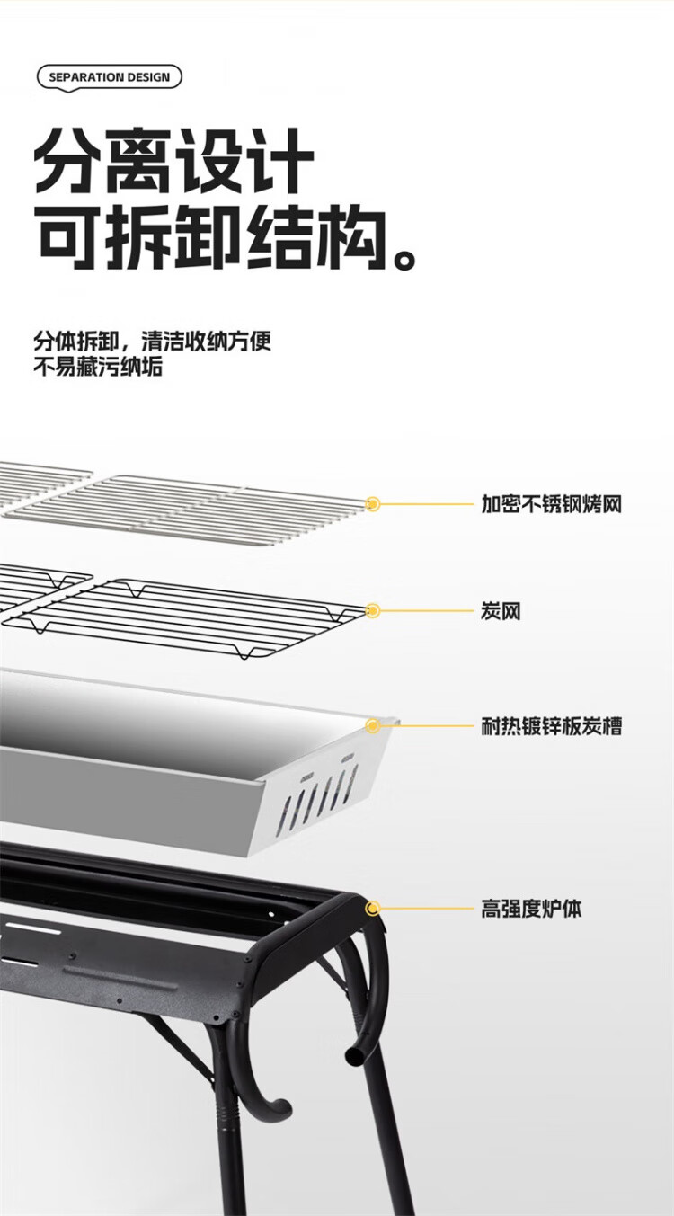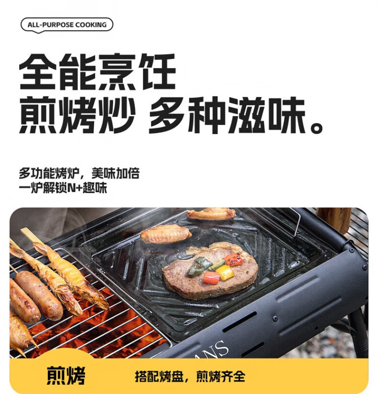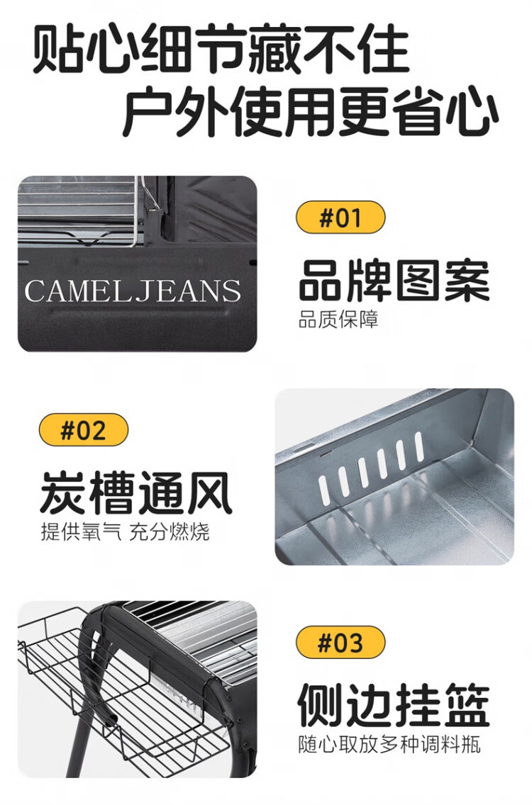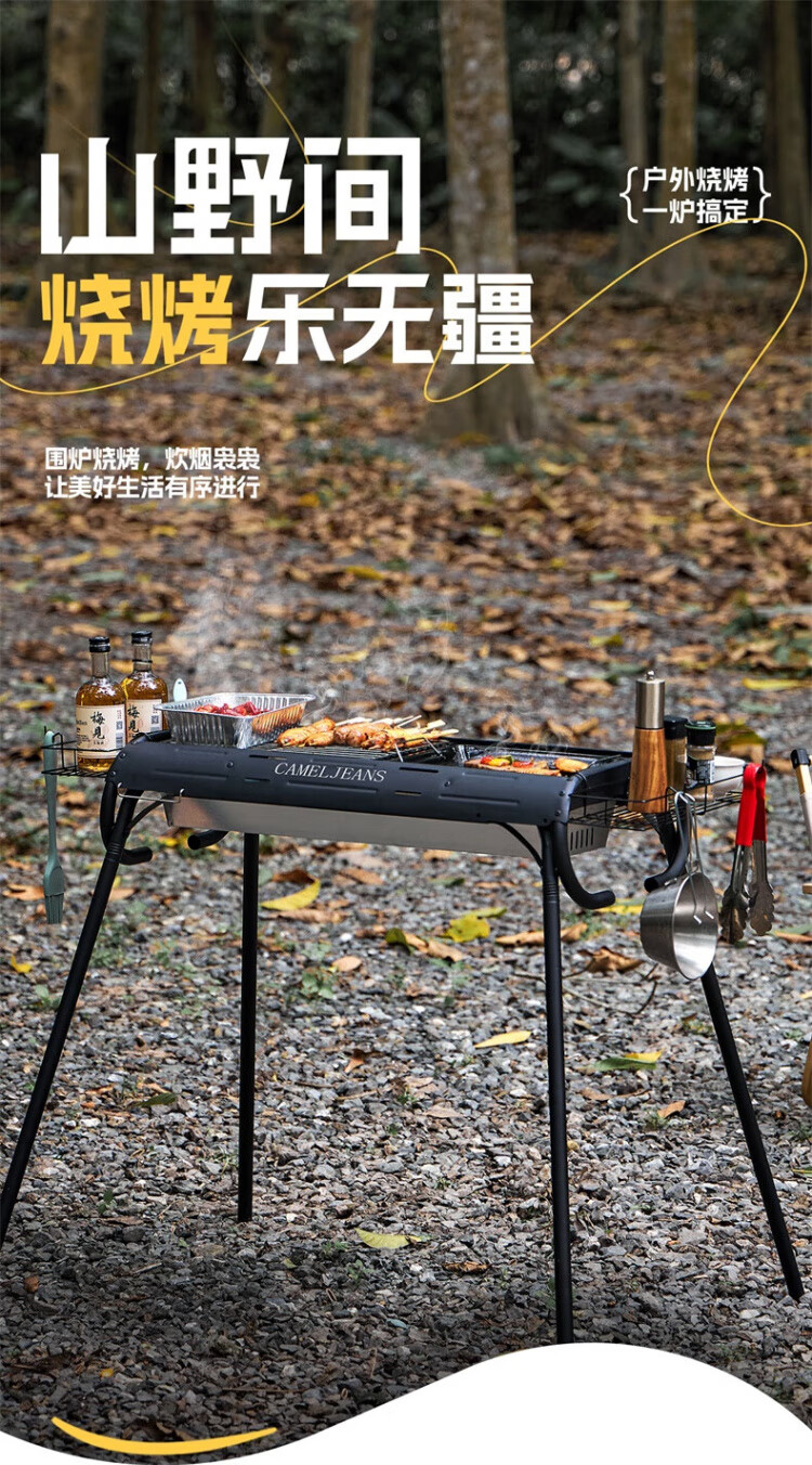 CAMELJEANS烧烤炉家用烧烤架烤肉串炉子户外露营便携折叠木炭可拆卸 174BH05721,炭烤炉配套煎盘
