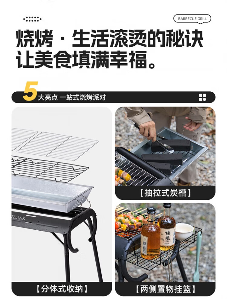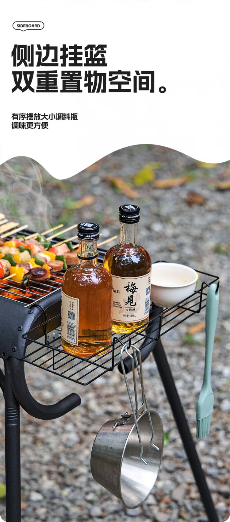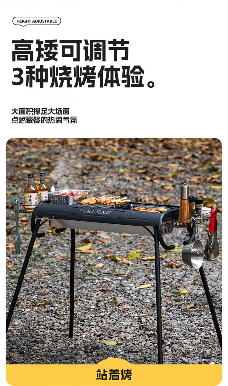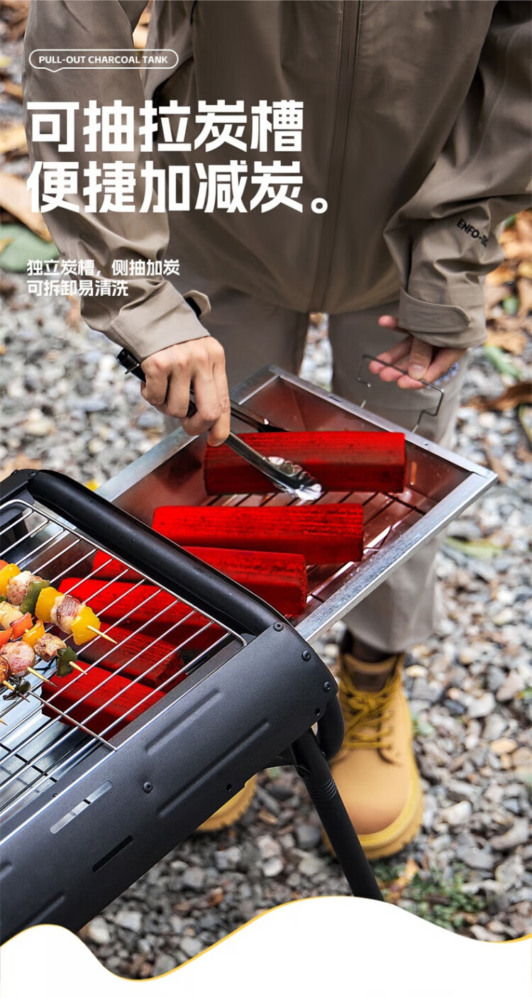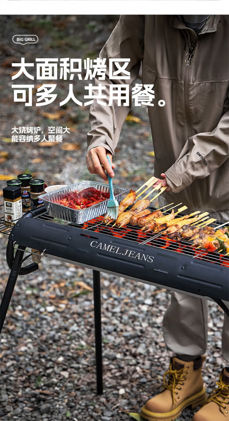 CAMELJEANS烧烤炉烤子家用户外商用烤肉2025新款烤串炉烤生蚝便携 黑色 175CJ41009
