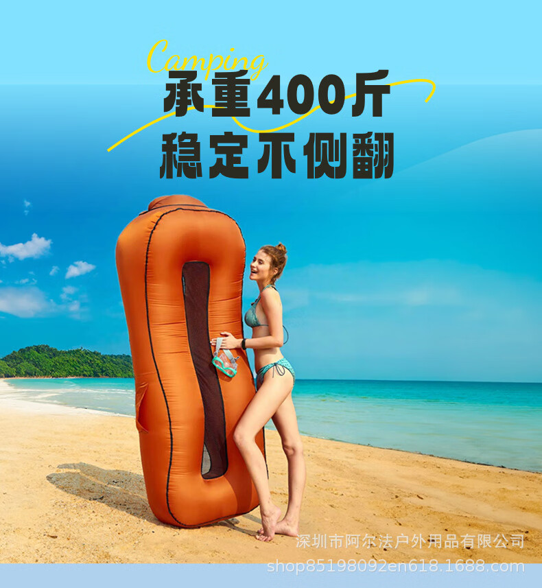 风豹严选深圳新款户外懒人充气快速充气床充气沙发水陆两用露营 涤纶红白(无网款 190*80*55cm
