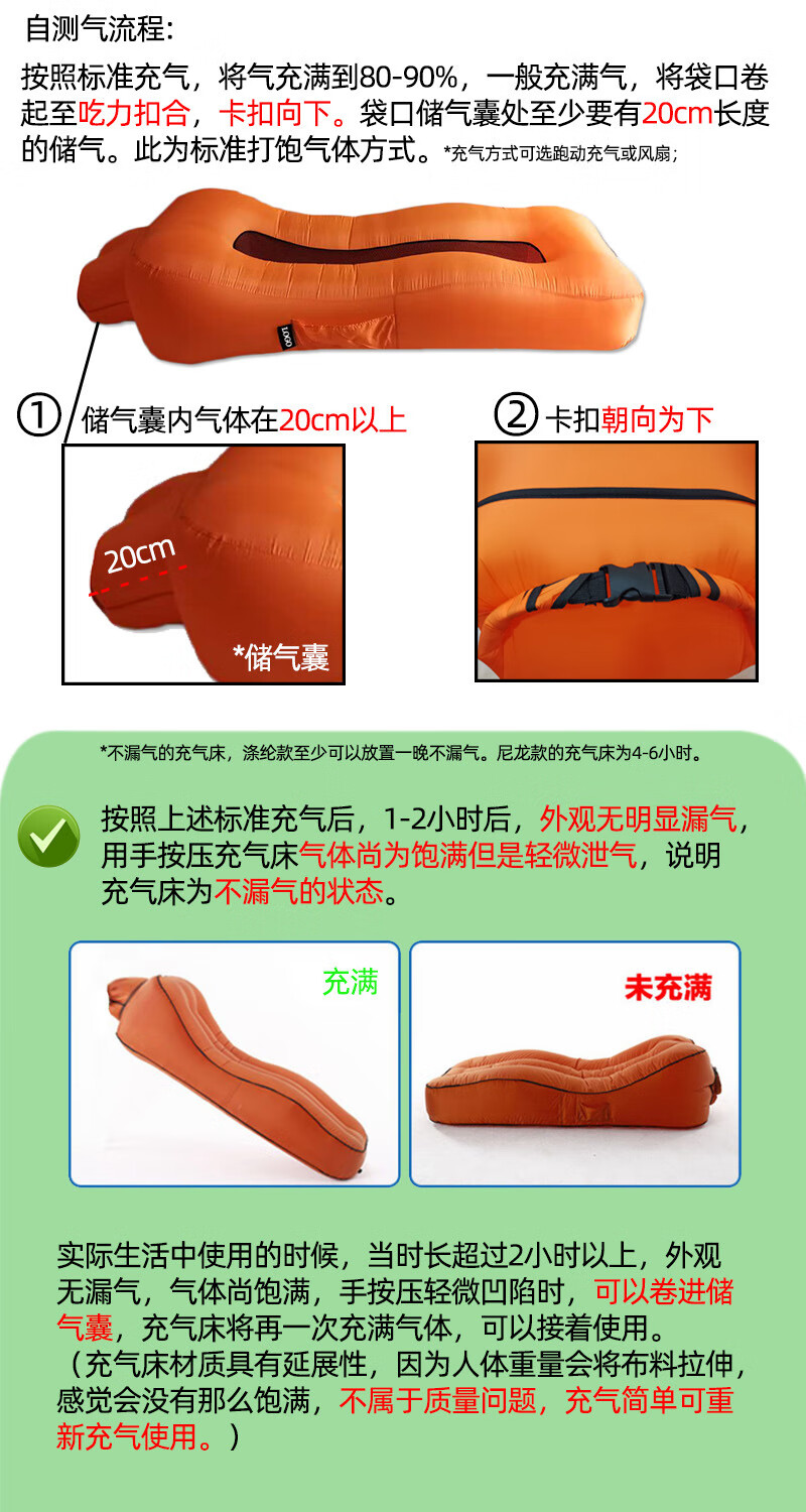 充气沙发音乐节户外必备露营懒人充气沙发自动空气床便携坐垫躺椅 大号橙色【含收纳袋】