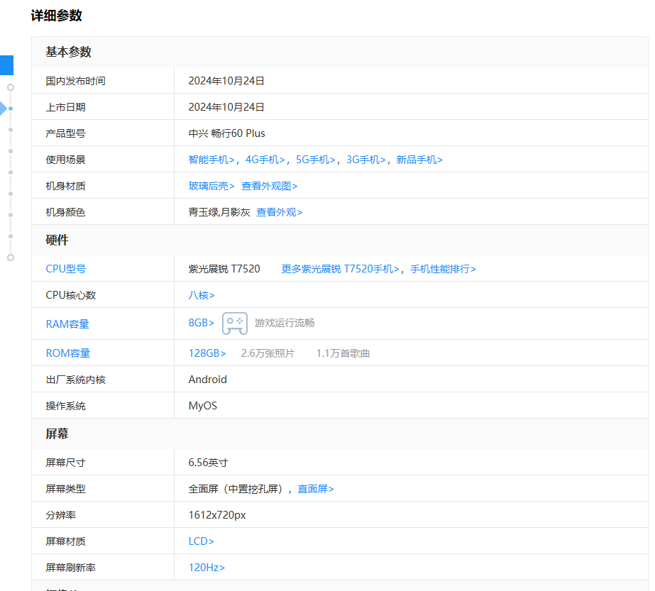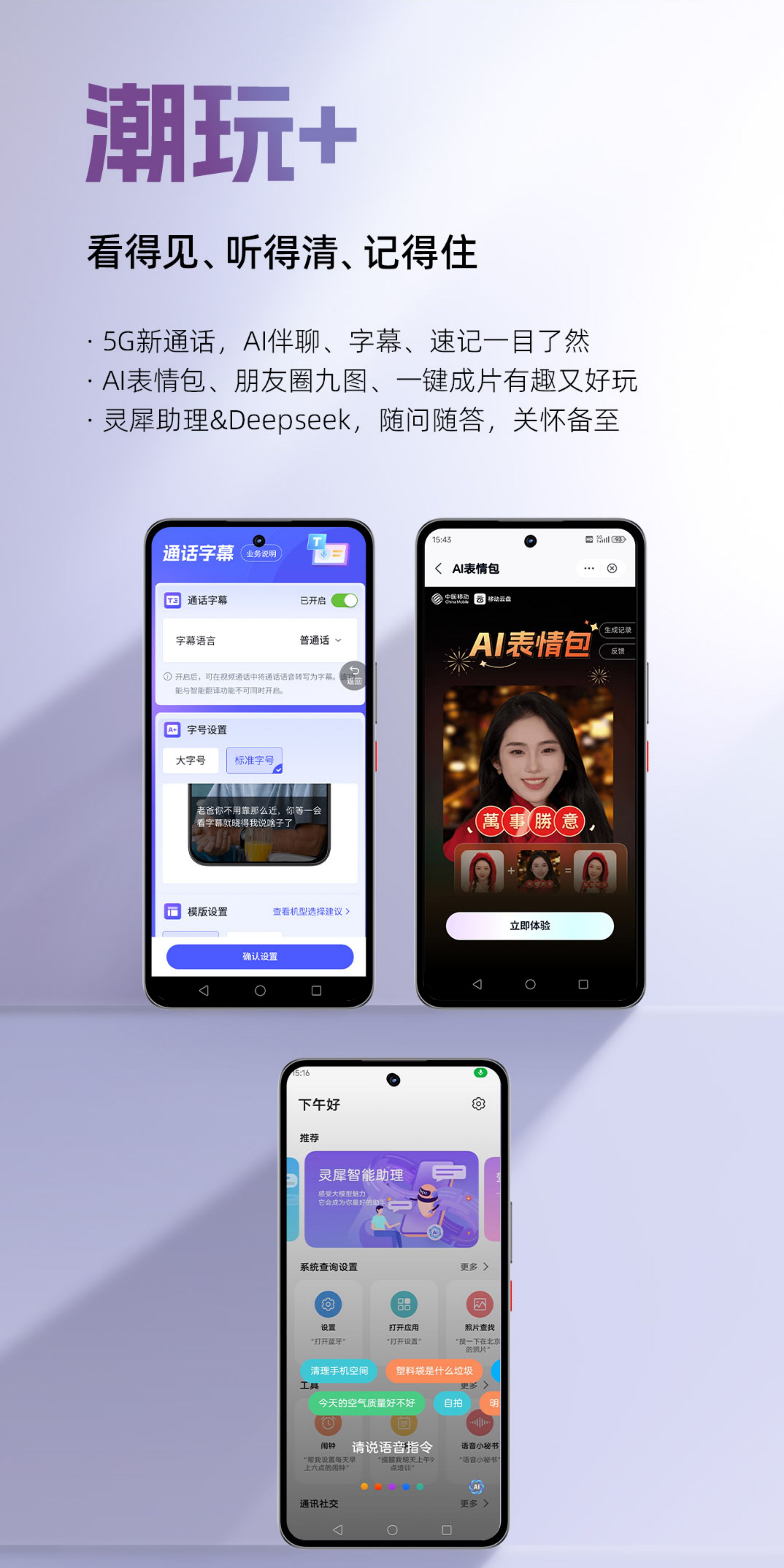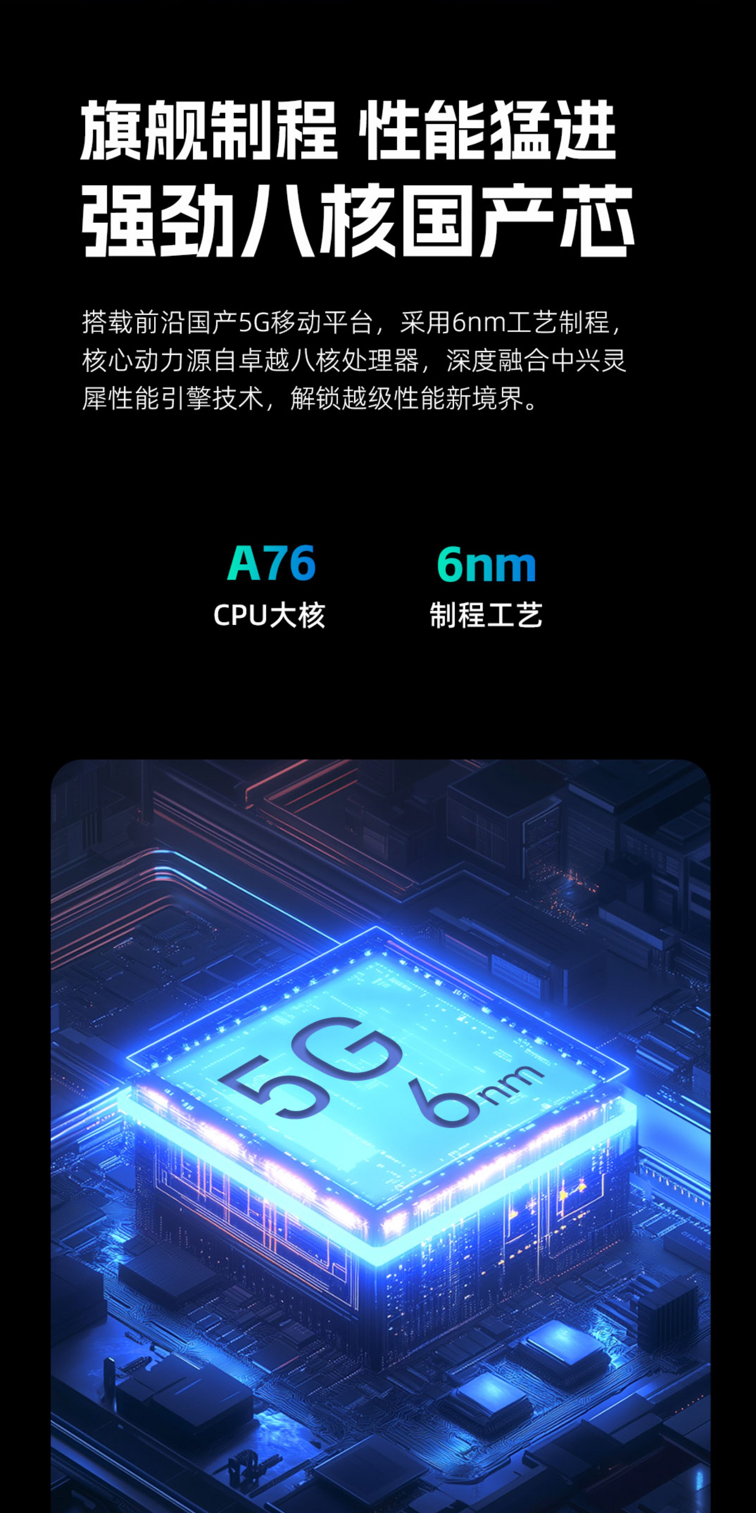 据介绍,中兴畅行 60 Plus 手机搭载 6nm 八核国产芯片,主频最高 2.2GHz(具体处理器型号未透露,标准版为紫光展锐 T7520 5G 芯片),同时内置 5000mAh 电池;预装中国移动九天大模型,支持文本生成、翻译助手、图片生成、文本总结、AI 魔法消除等功能。