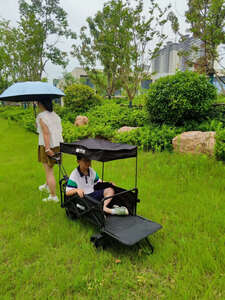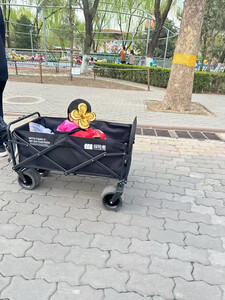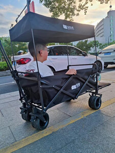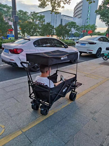 快递收到了,以为要安装一会儿,结果打开就能用,罩子一套就行,太方便了,收纳也超级简单,这车既能拖货又能拉载小朋友,后开门,在外宝宝困了还能睡里面,很实用。