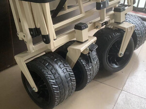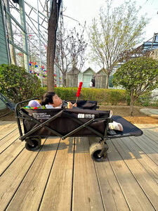 有了这款小推车出门露营既方便又轻松,这款小推车的质量和承重力都很好,轮子加宽在不平整的公园地段推着也很稳定,客服态度也很好,很有耐心,总之非常值得购买