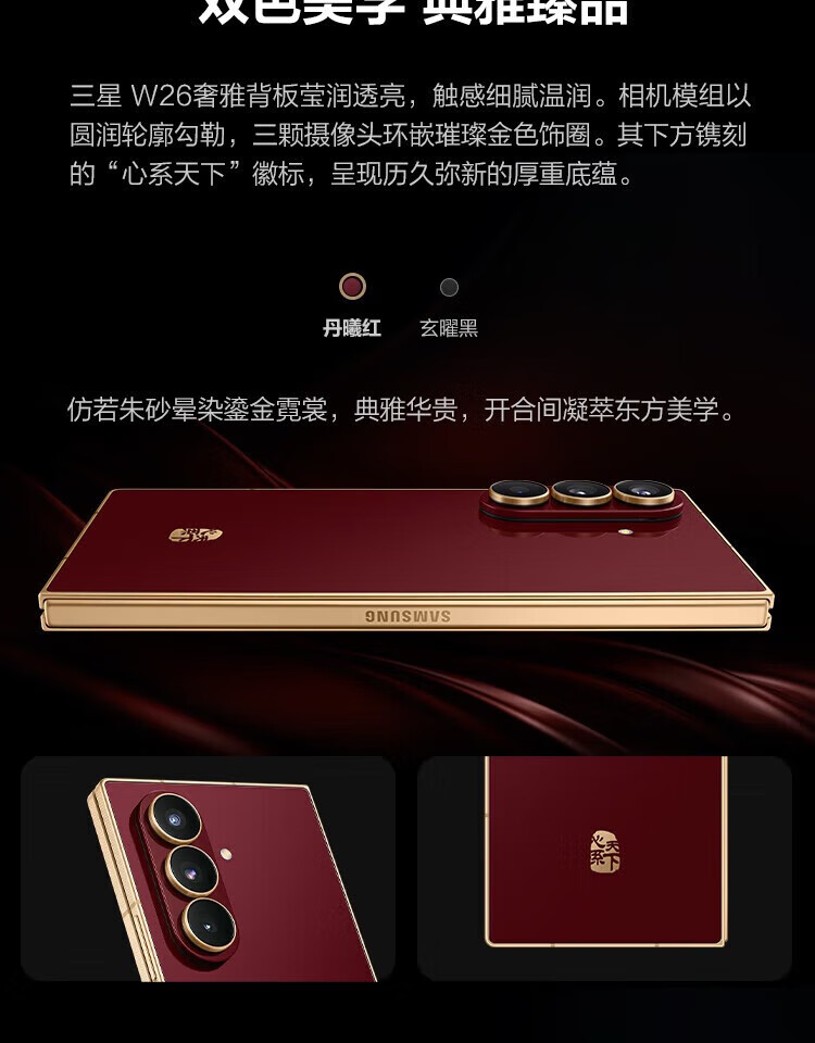 三星W25心系天下 AI手机 【北京支持同城闪送】2亿像素 折叠屏手机三星W24心系天下升级版 陶瓷黑 16GB+512GB 免息版本24期