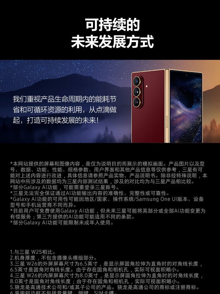 三星(SAMSUNG)心系天下 W26 折叠屏手机 超轻薄超大屏 2亿像素 新品5G手机 玄曜黑 16+512GB 10-11月补贴机 【24免息】