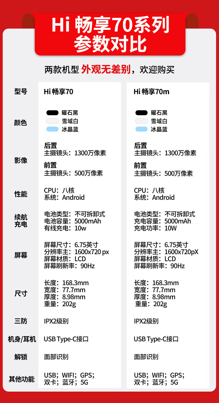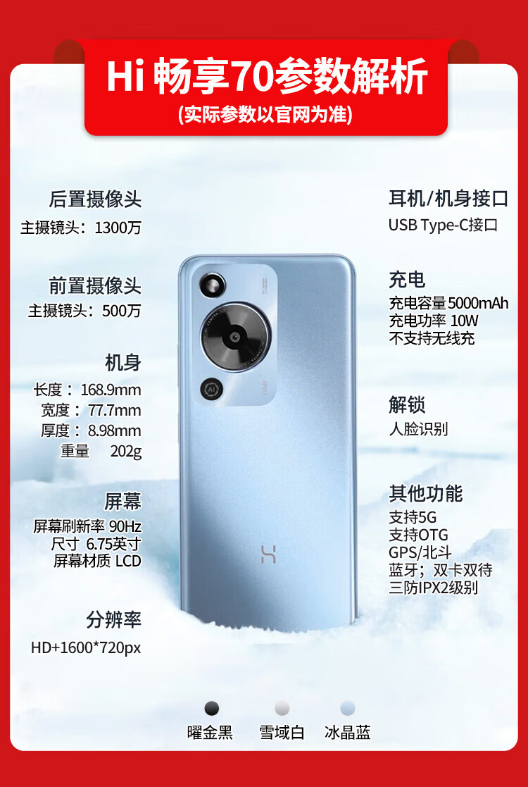 华为智选Hi畅享 70 鸿蒙安全守护5G全网通智能手机 5000mAh长续航 6.75英寸LCD直面屏 天玑700处理器 雪域白 8GB+256GB
