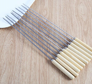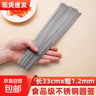 烧烤签子不锈钢扁签圆签木柄羊肉串烤肉铁签家用户外烤串商用工具 食品级-不锈钢圆签-33CM*1.6MM 100支
