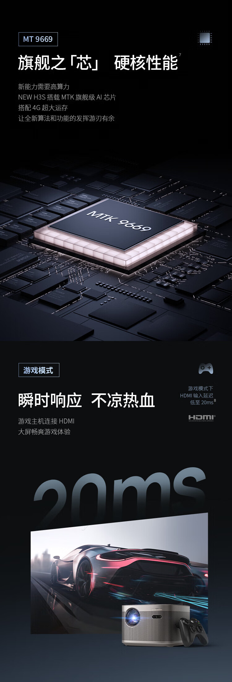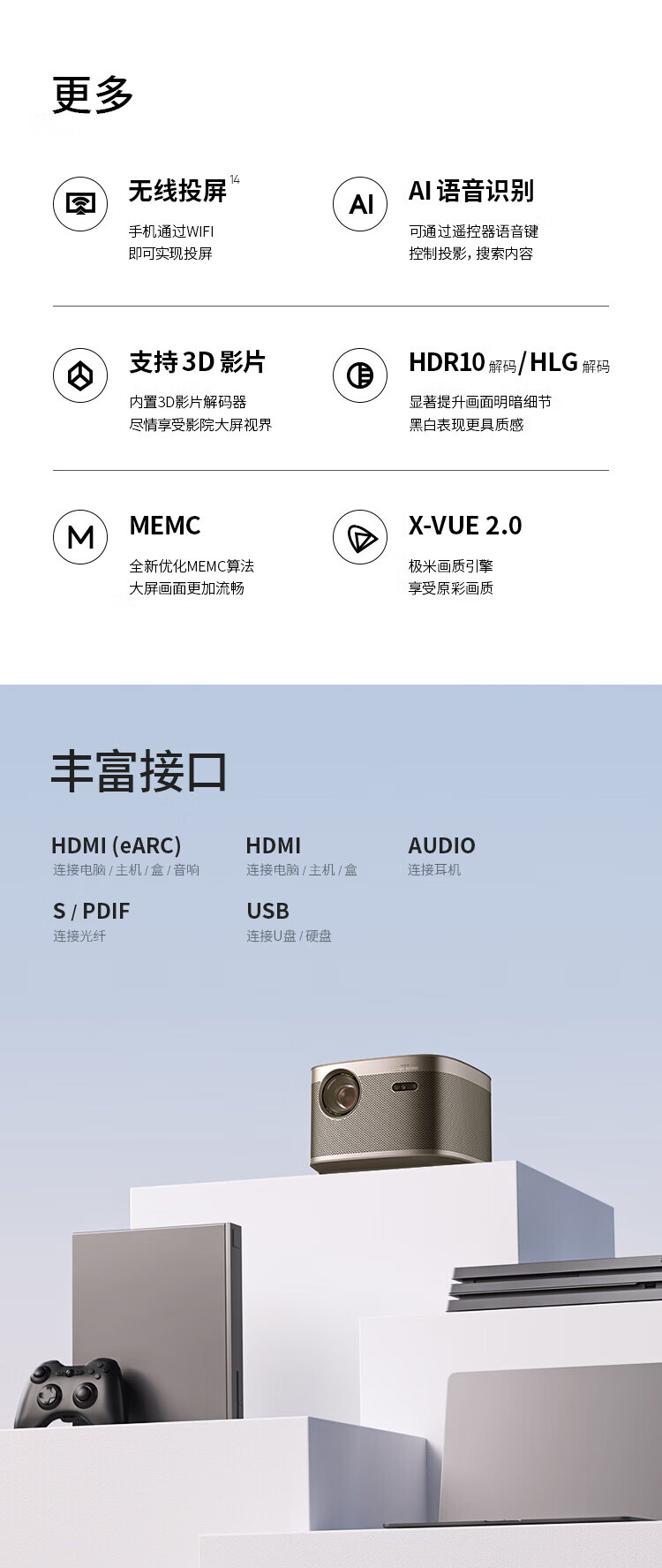 外形外观:外观时尚优雅 投影亮度:亮度高,白天不影响观影 投影色彩:投影色彩逼真,色彩还原度高! 音质音效:用的哈曼卡顿的音箱,音质非常好! 操作难易:操作简单易懂 其他特色:自动调校,画面自动调整,非常方便!