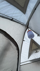 牧高笛冷山2终于等到双11优惠啦,之前看很多UP主用的冷山2,买回来就赶紧在家搭建起来了,搭建简单,折叠的铝杆,方便收纳,地钉也很扎实也不重,顶部可以挂灯,也有收纳空间,四个角有储物空间,内部拉链可以系上,安全性有保证。后续使用了再来追评。
