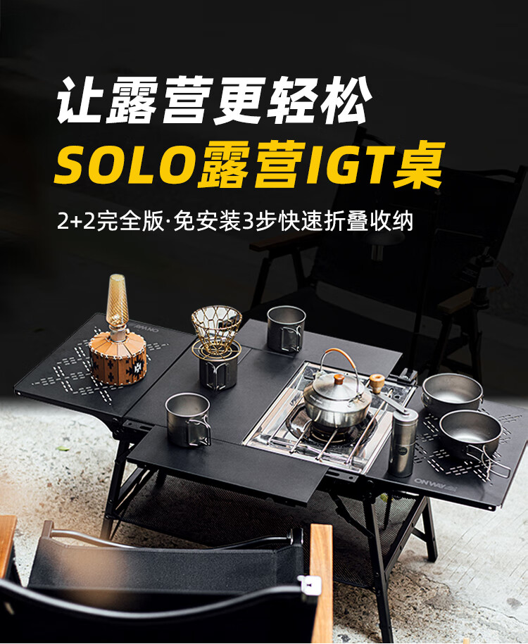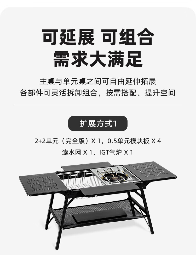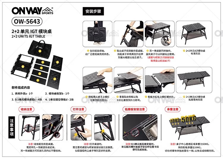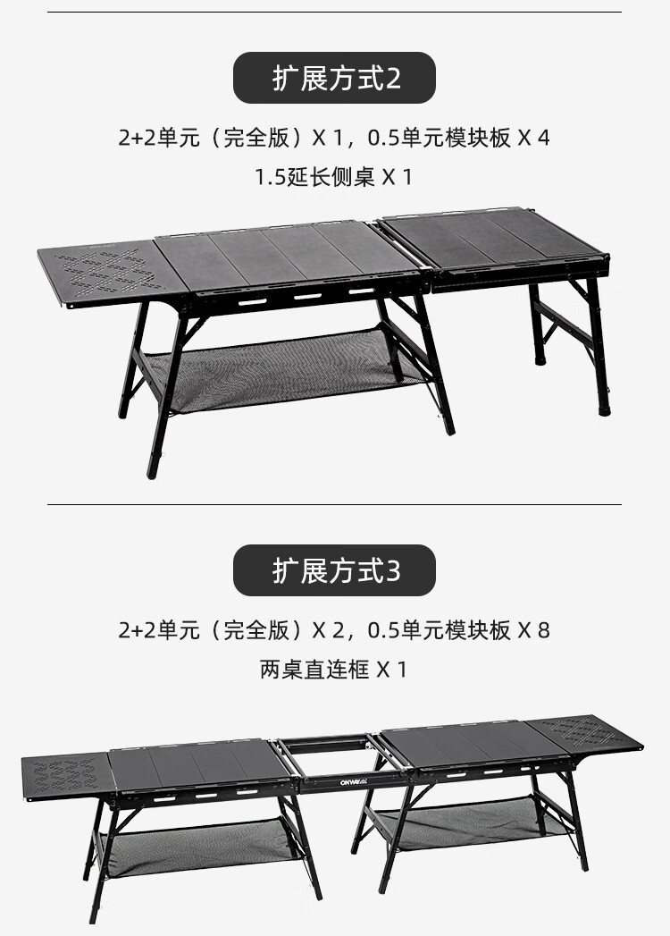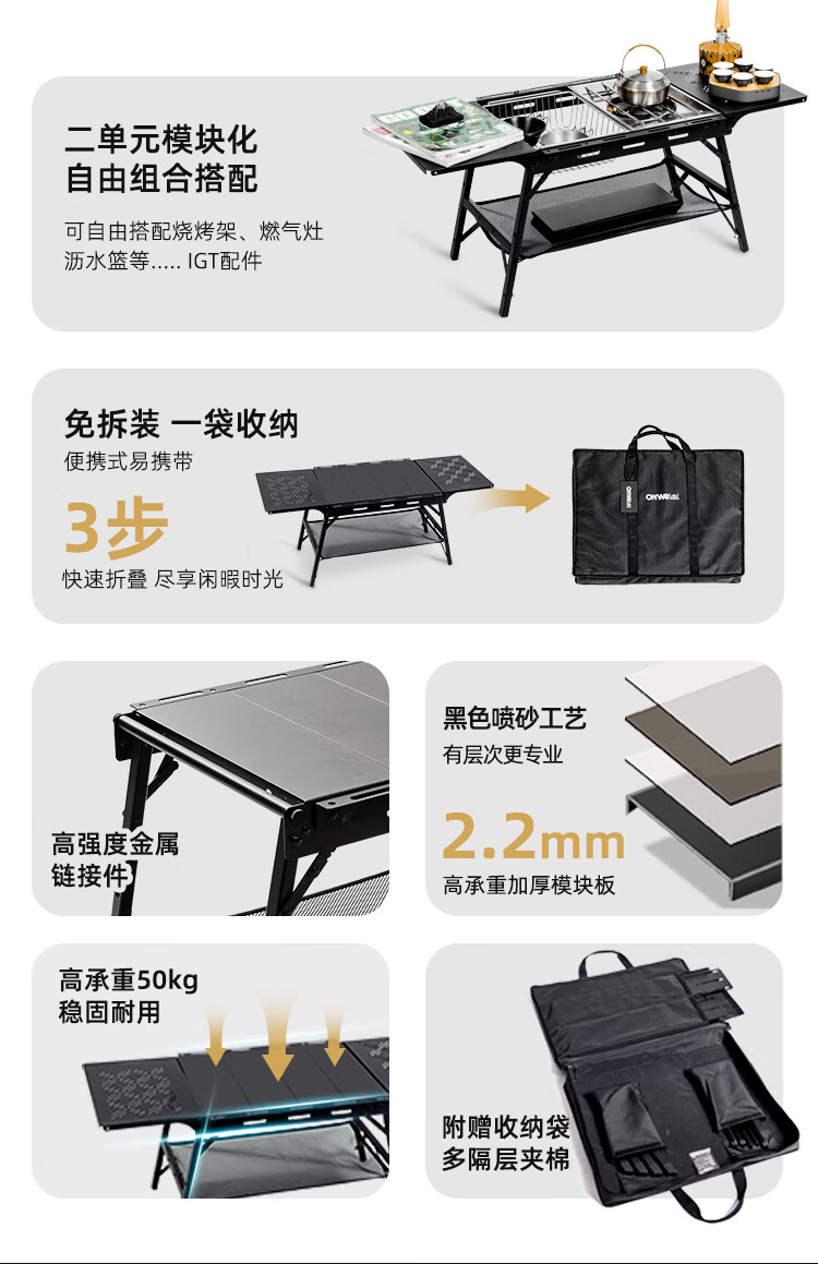 OnwaySports2+2单元IGT桌户外露营用品装备SOLO折叠野餐模块多功能战术组合桌 【1.5单元侧桌】黑化
