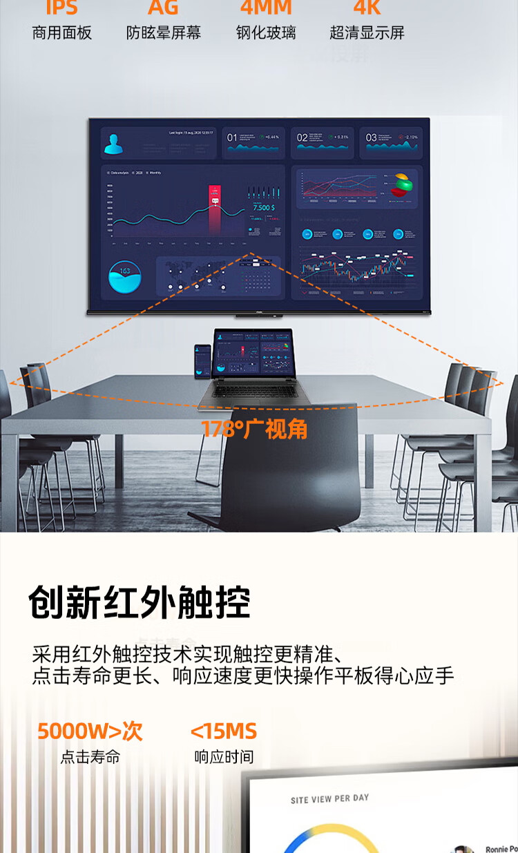 小米4k新款会议智慧屏教学触摸一体机多媒体 100寸双触控防爆电子白板 75寸i7/8+256G双防蓝光屏幕