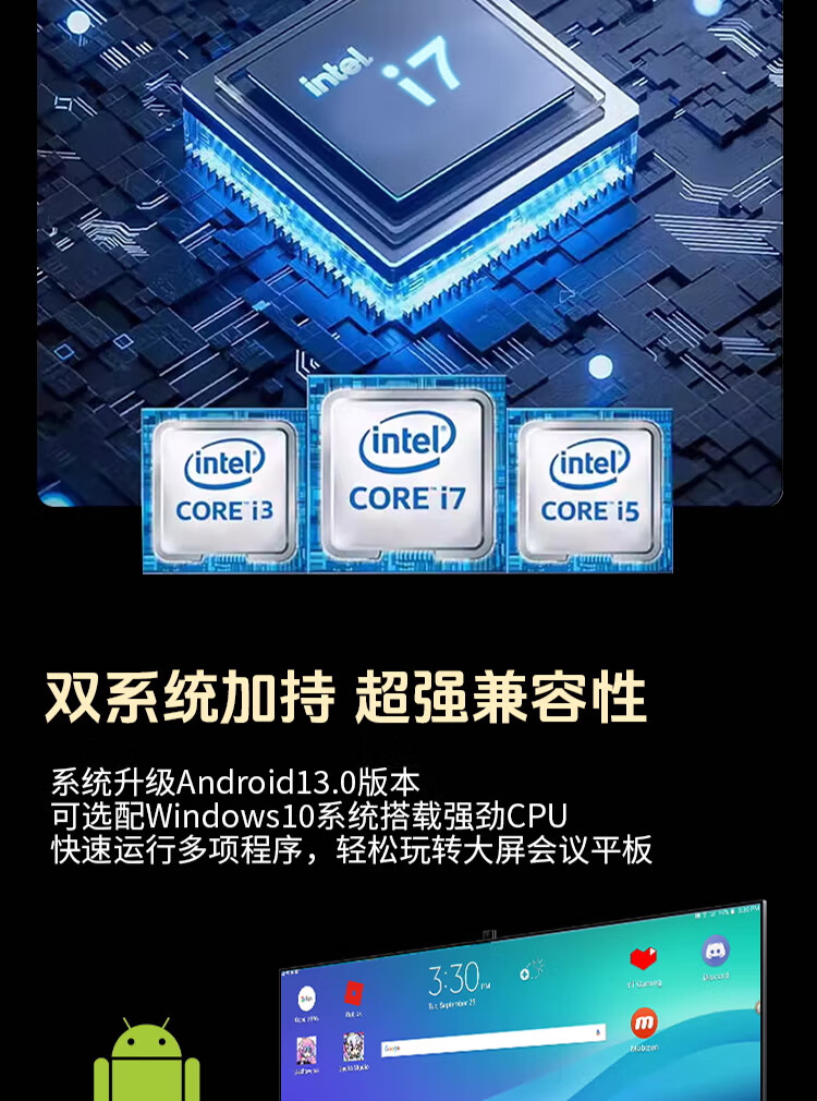 标致 会议平板教育教学一体机触摸屏交互式电子白板多媒体视频会议办公大屏幕 55英寸 单系统(i3+8G+256G)