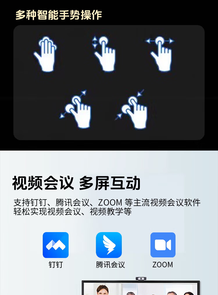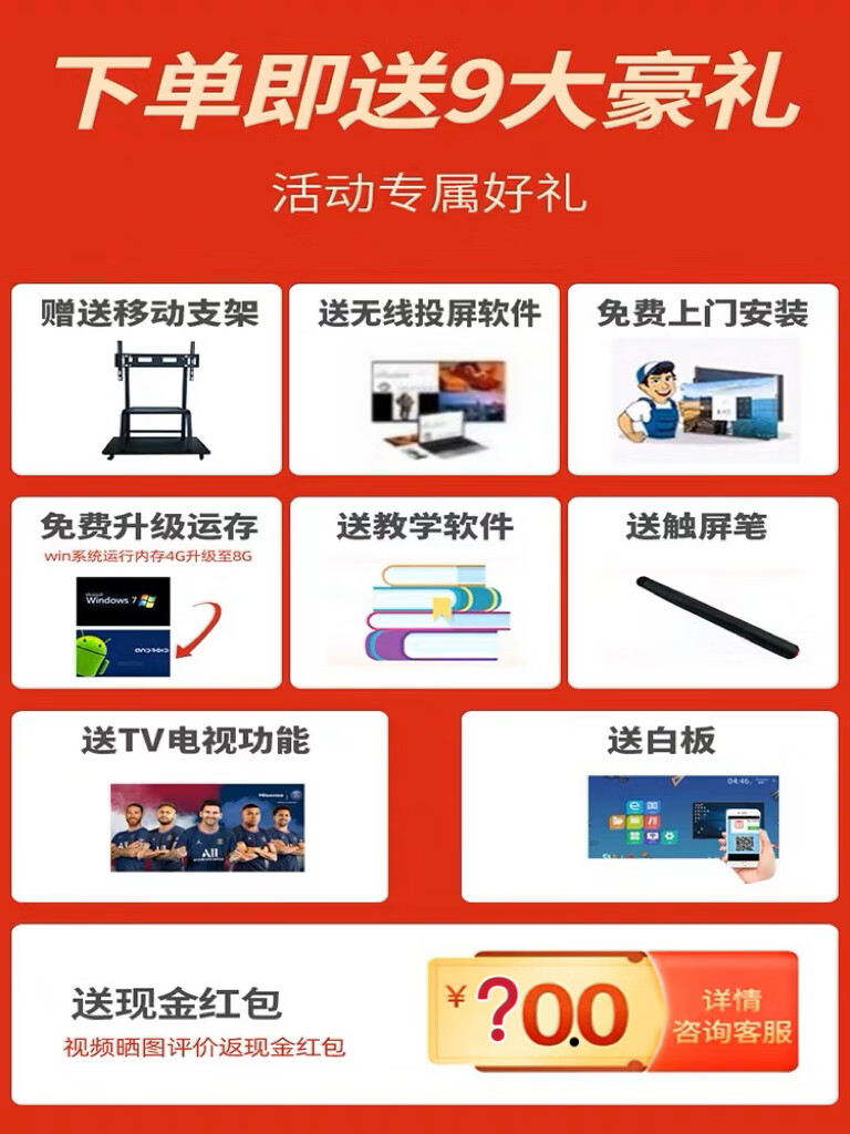 教学一体机触屏会议平板电视多媒体智能电子白板书写学校培训教育幼儿园大屏触摸触控一体机 85寸/86寸/适用20-30人/赠送推车 【教学标配】win10(i5/8G/128G)