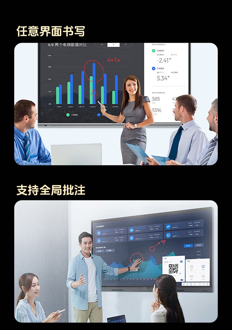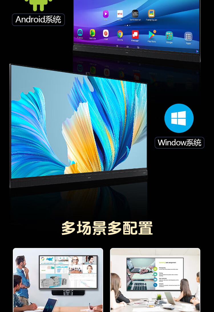 会议培训一体机平板电视屏超清多媒体教学一体机触摸控屏无线投屏显示器会议室手写电子白板学校家用幼教学机 55英寸教学会议机【护眼带蓝牙】+壁挂架 安卓13.0【4G+32G】