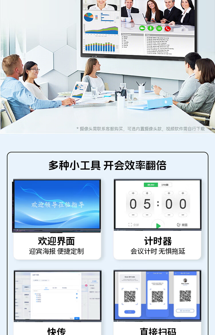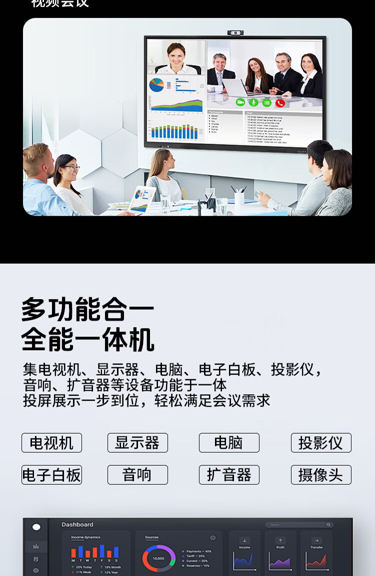 会议一体机视频会议平板多媒体教学一体机触摸屏电脑智能互动电子白板 会议触控大屏100寸 86寸会议一体机 安卓系统+推车