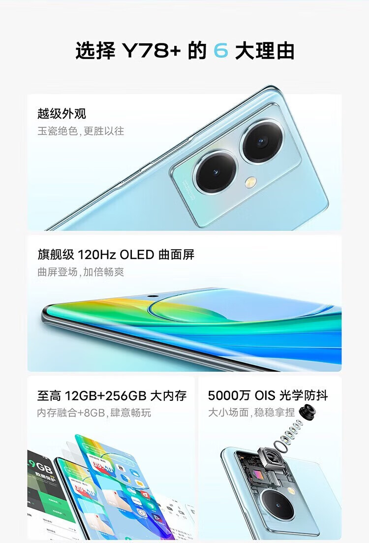 vivoY78 【全新未拆封+未激活+全国联保】120Hz原色适眼屏 天玑7020 5000万超清主摄 5G 快充拍照手机 Y78-玉瓷青 8GB+128GB