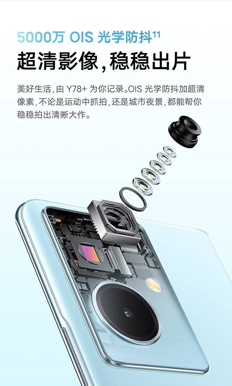 vivoY78+ 旗舰级OIS光学防抖全网通5G拍照游戏学生老人国行补贴机 天青色 12GB+256GB 单机+快充配件+【店保一年】