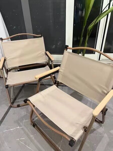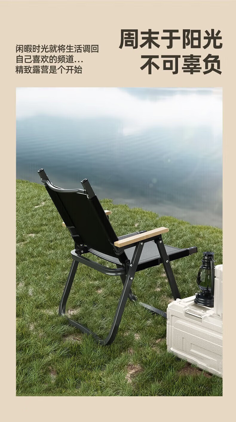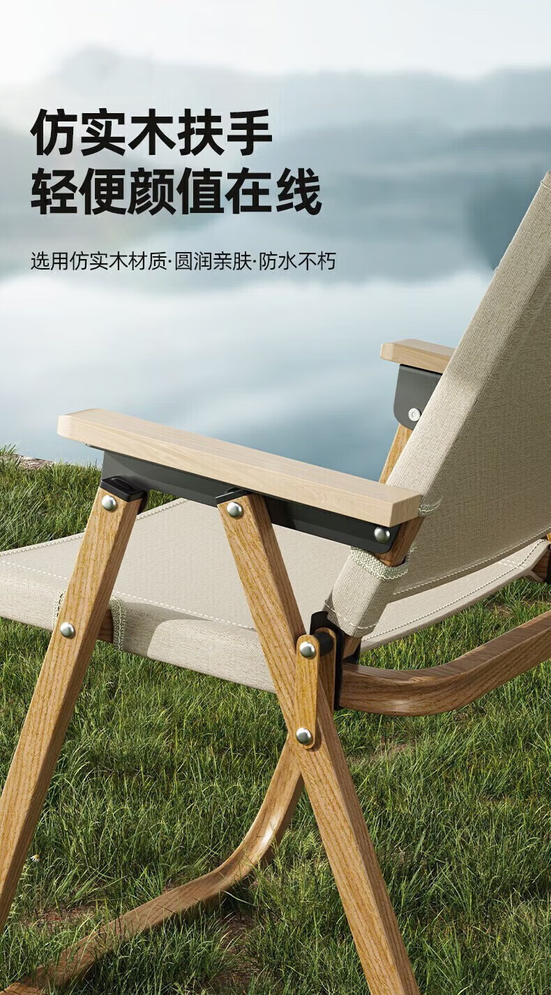 Aoran 户外折叠椅克米特椅露营椅子户外椅子折叠便携露营椅沙滩椅 木色架-卡其【经典加粗】