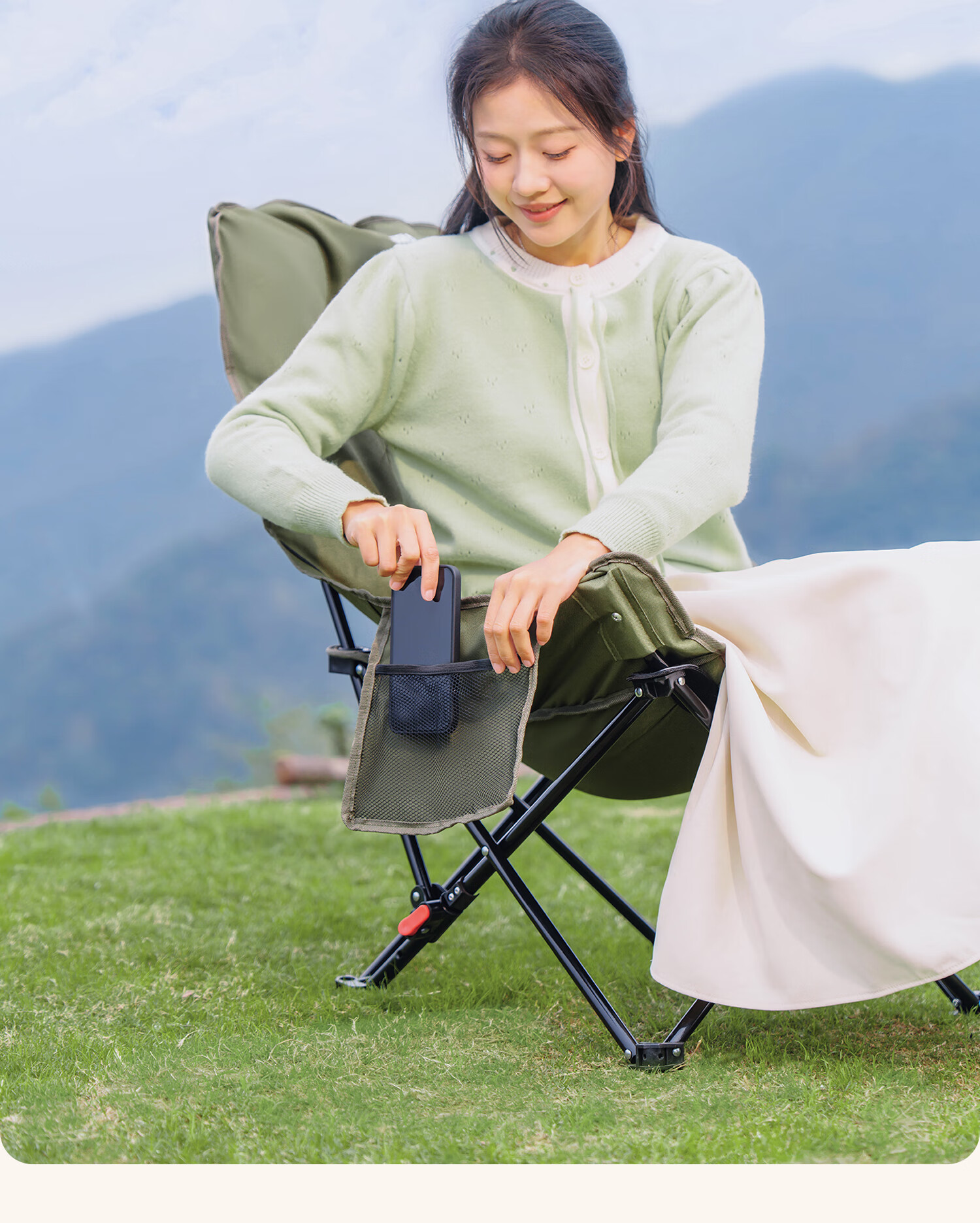 这款原始人户外折叠椅堪称户外休闲神器!3秒快速展开收纳,巴掌大的收纳袋轻松便携,拎着无负担。600D牛津布搭配加粗钢管,三角结构稳固抗造,承重强不晃,105°人体工学仰角贴合腰背,久坐不累。自带隐藏杯架和侧兜,橡胶防滑脚架适配沙滩、草地等场景。露营、钓鱼、野餐、午休都超实用,颜值与实用性拉满,性价比绝了!