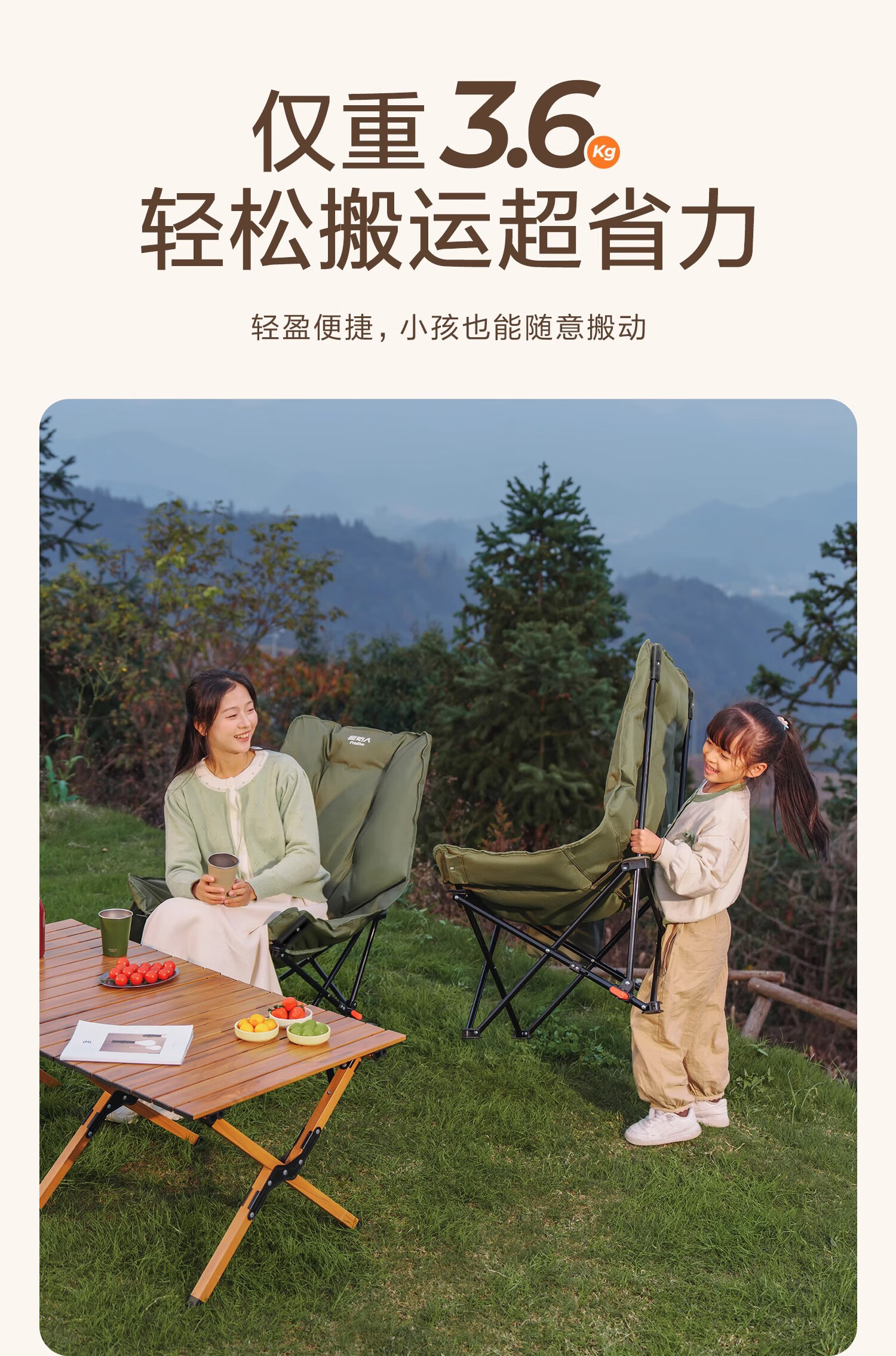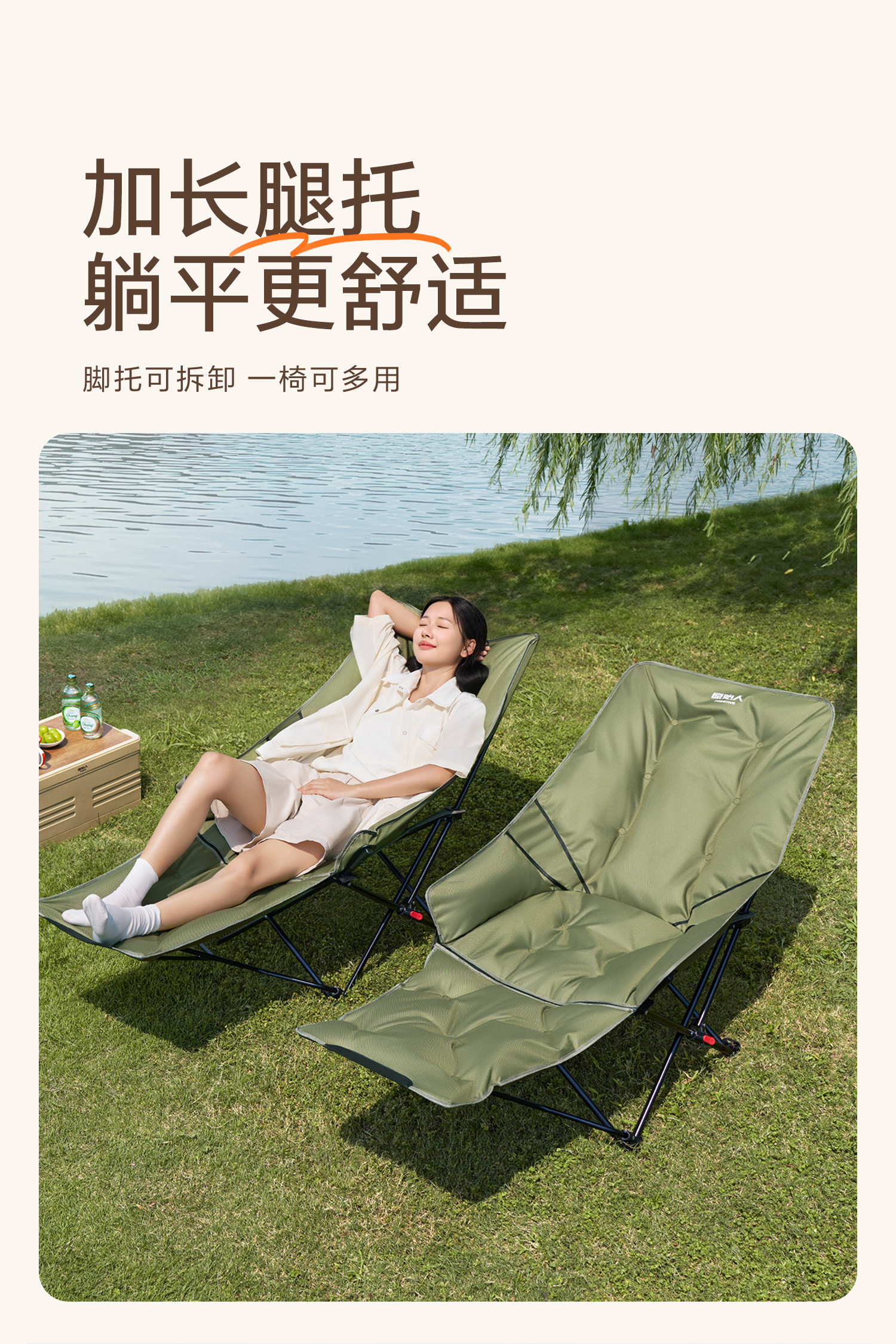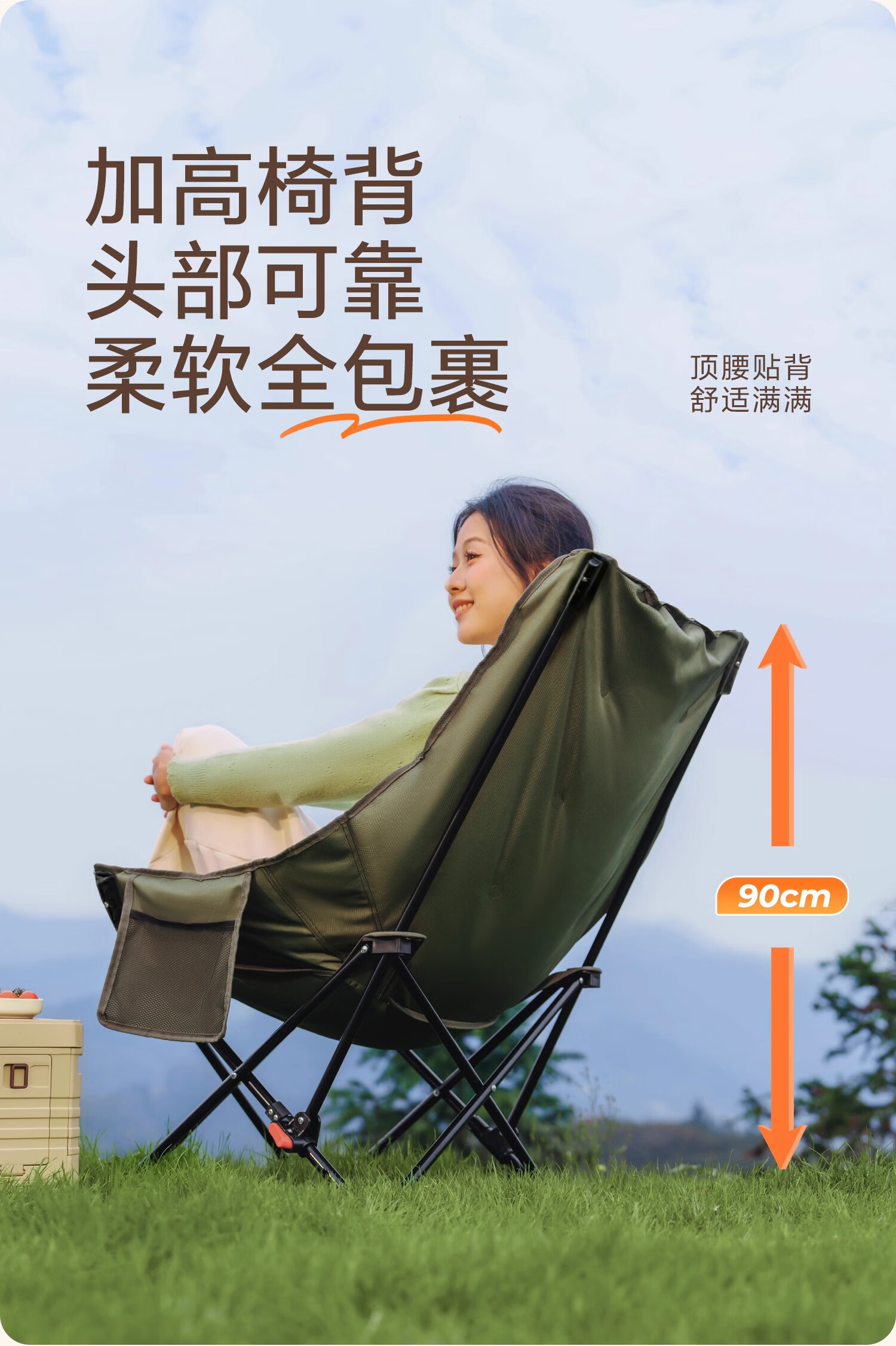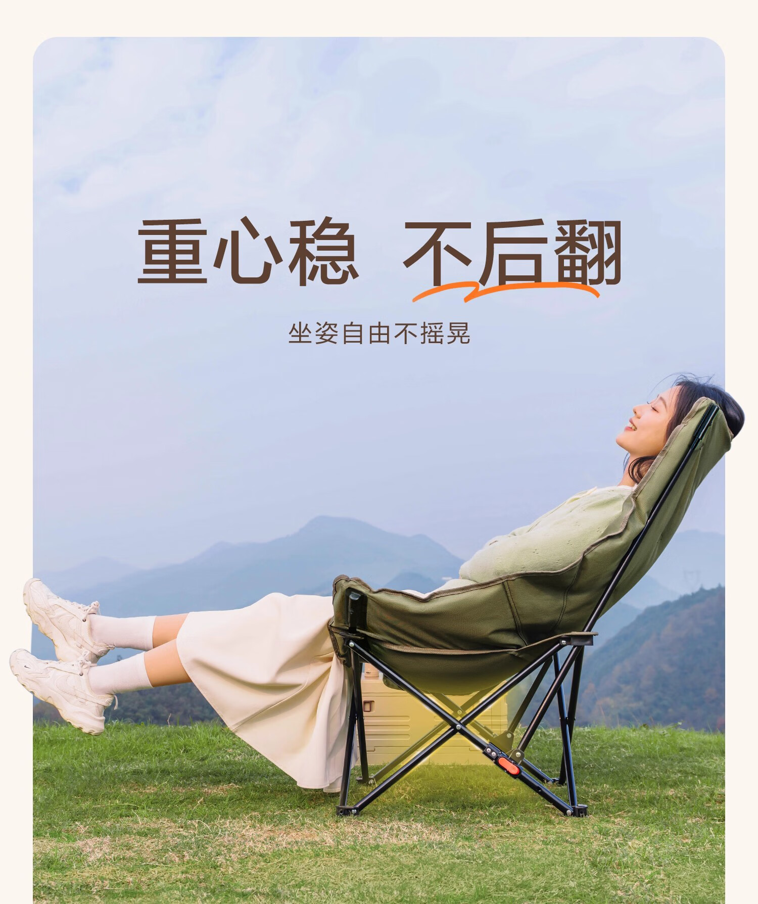 挪客躺椅户外折叠高背月亮椅露营可睡可躺午睡靠背椅懒人钓鱼椅子 徒步绿【超宽沙发坐感 可坐可躺