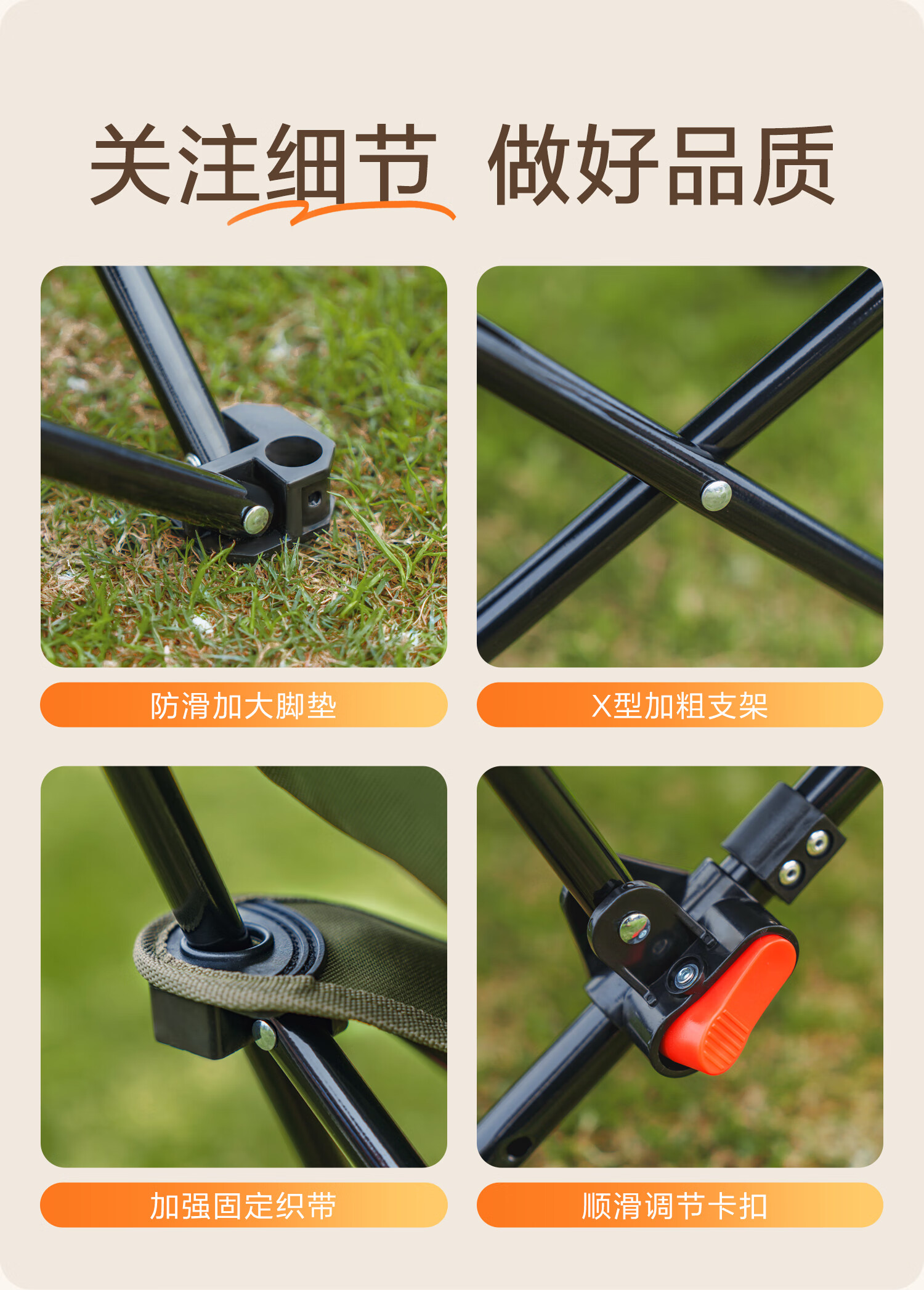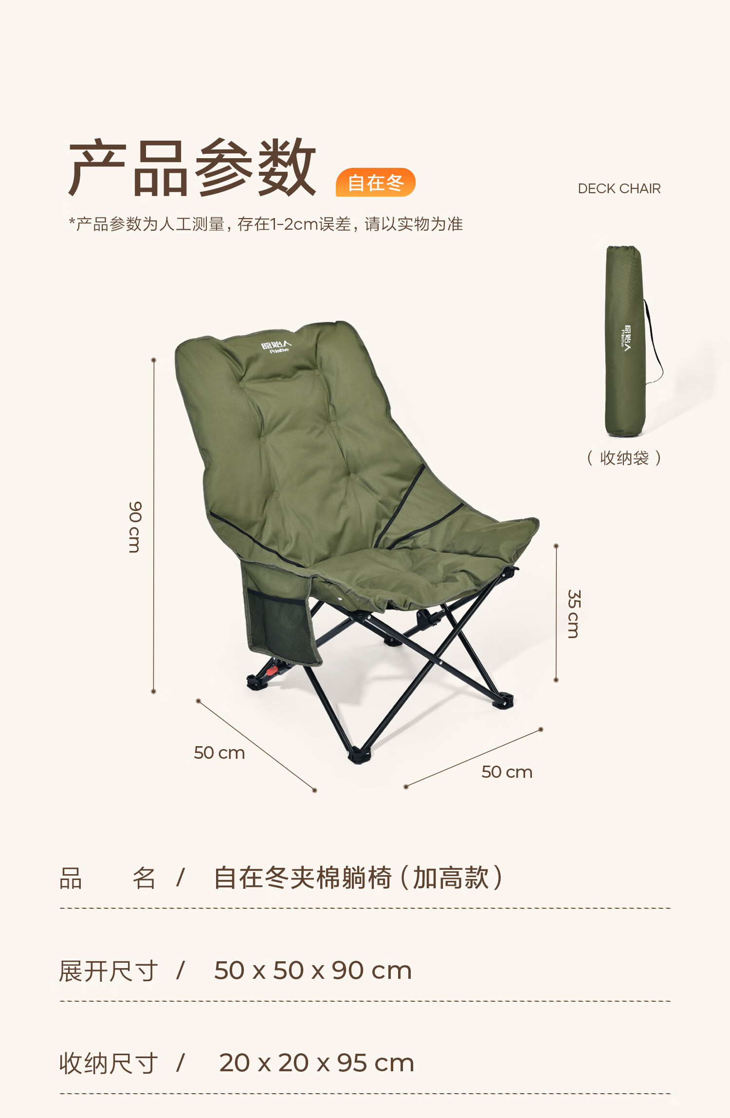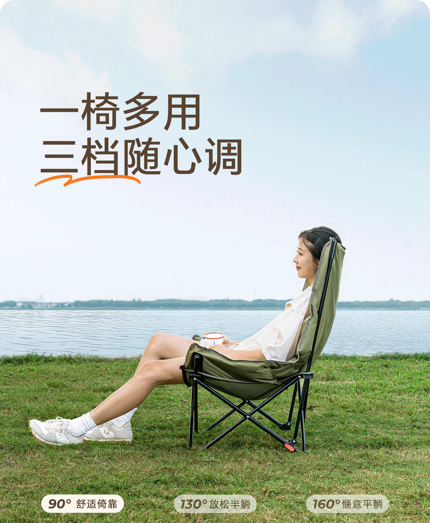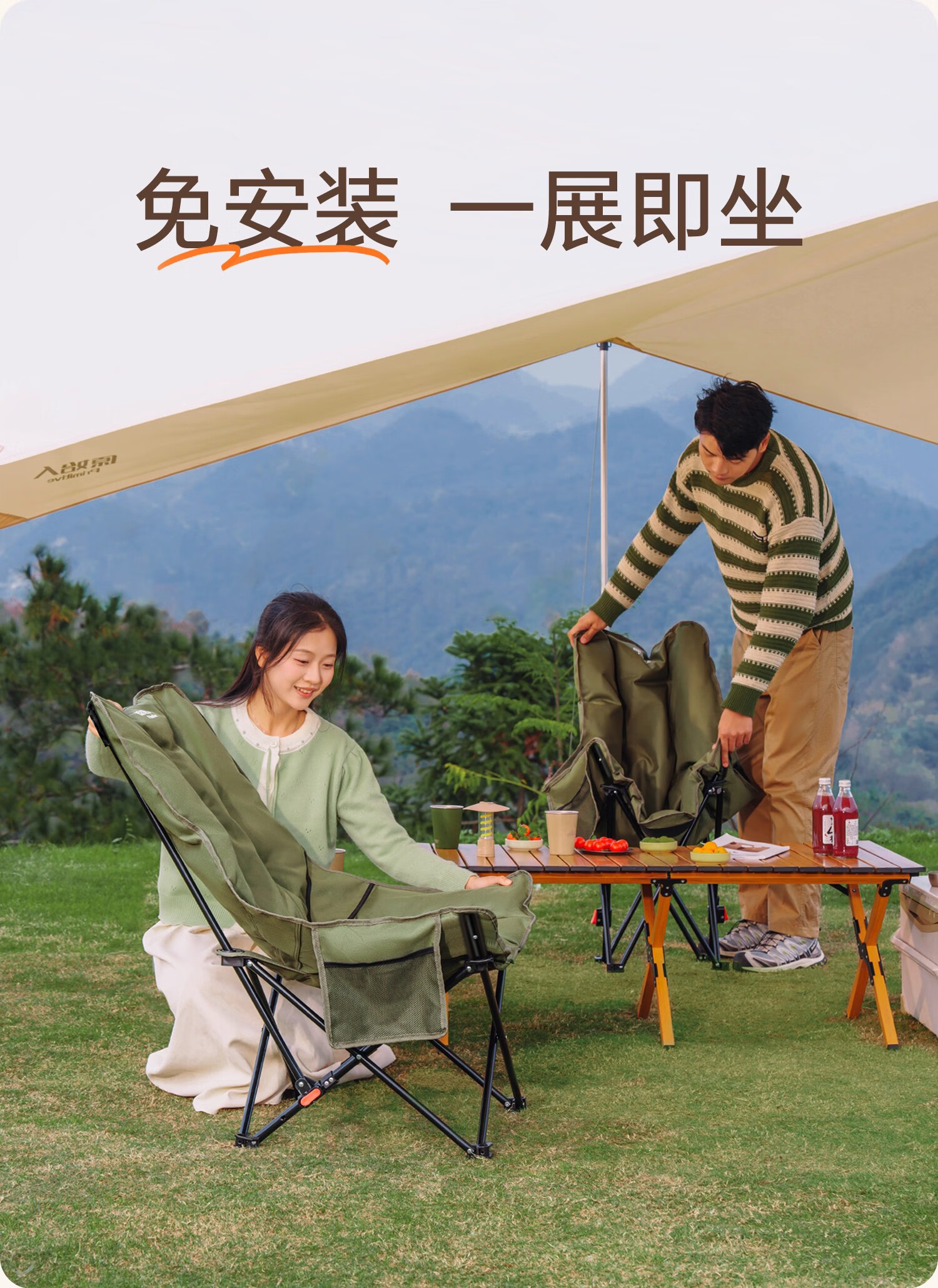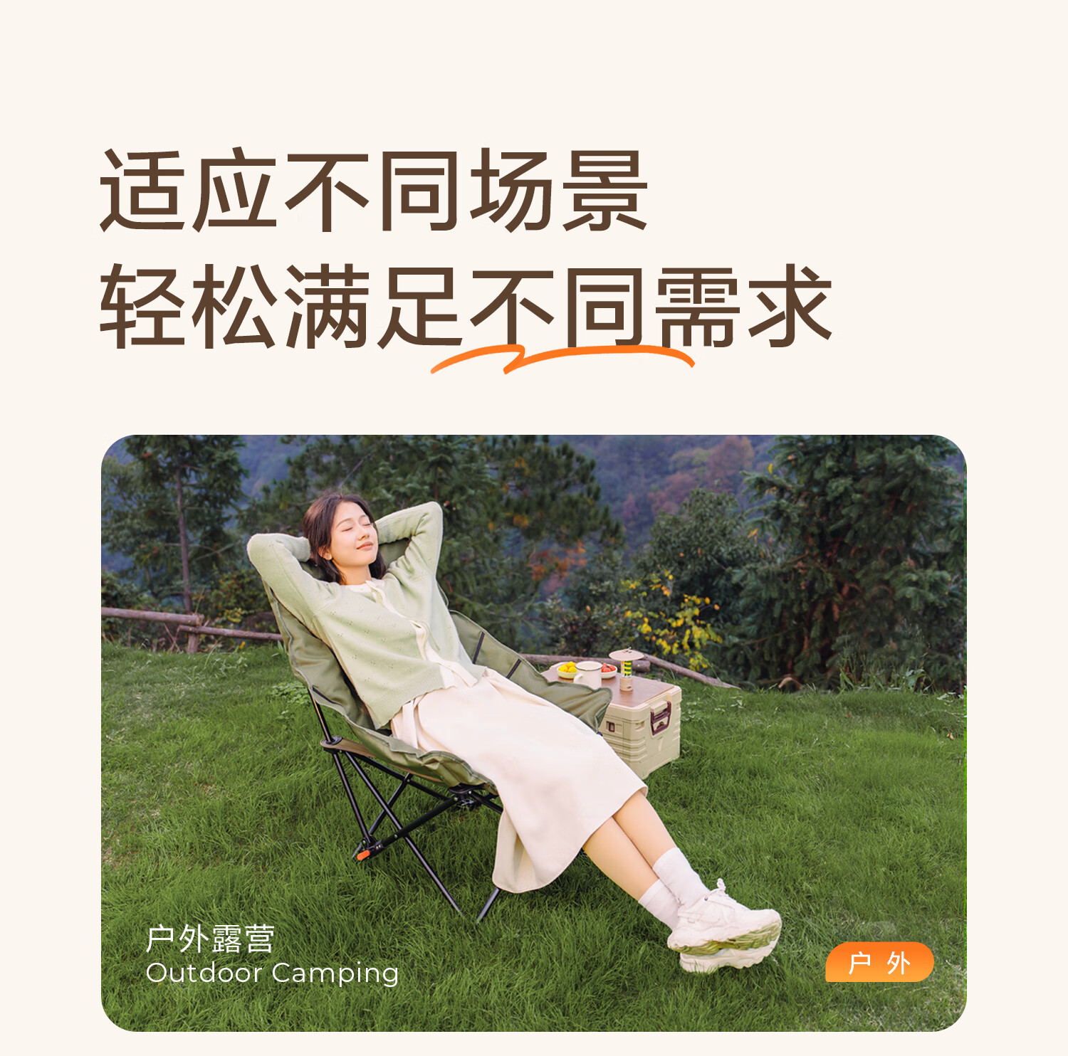 挪客躺椅户外折叠高背月亮椅露营可睡可躺午睡靠背椅懒人钓鱼椅子 徒步绿【超宽沙发坐感 可坐可躺