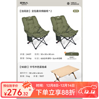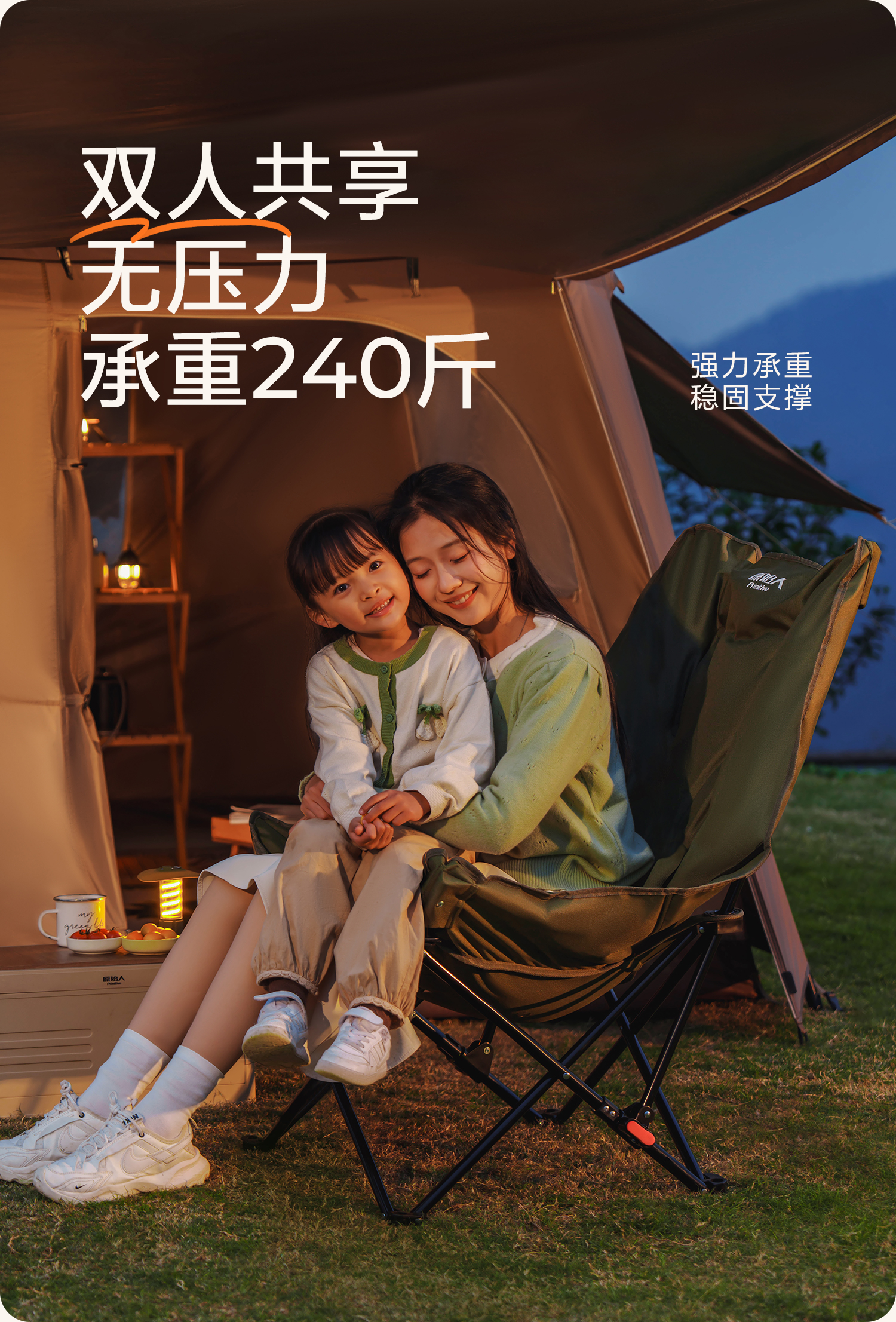 原始人户外折叠椅月亮椅露营椅子钓鱼沙滩椅便携式午休躺椅野餐凳 【双人蛋卷桌套装】加高绿色椅*2