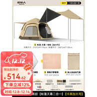 原始人(The Primitive)露营帐篷户外便携式折叠野营天幕二合一便携防雨过夜加厚装备全套 钛黑胶【帐篷天幕加大】充气垫套装