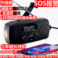 进口多功能手摇发电收音机充电宝太阳能电筒户外战备应急生存装备 黑色6000mAh【全波段/充手机/手摇/太阳能/