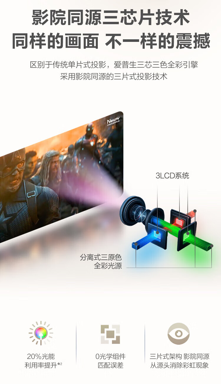 爱普生(EPSON)EF-50T 家用4K投影仪 3x0.62''大尺寸芯片智能投影机 4K超高清 EF-52[漫威联名 4K旗舰投影] 标配